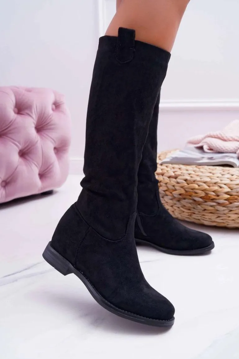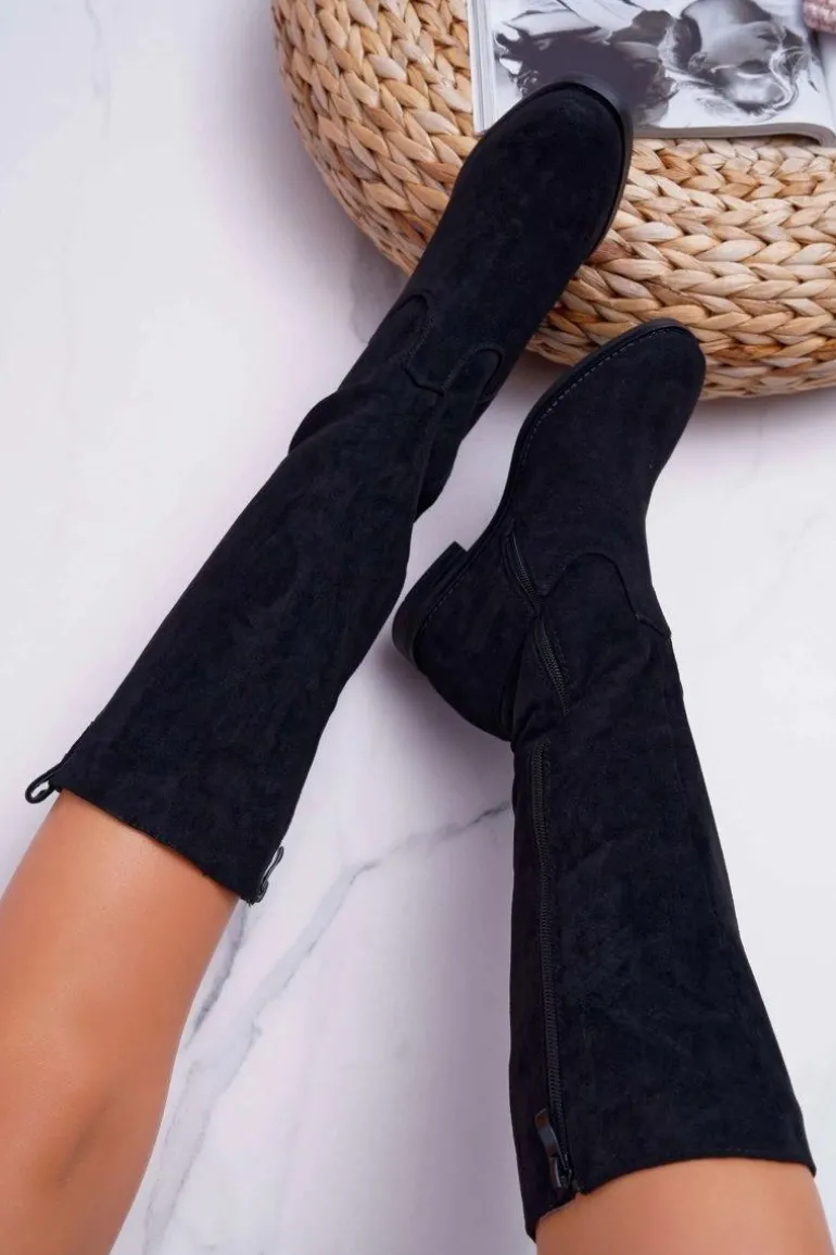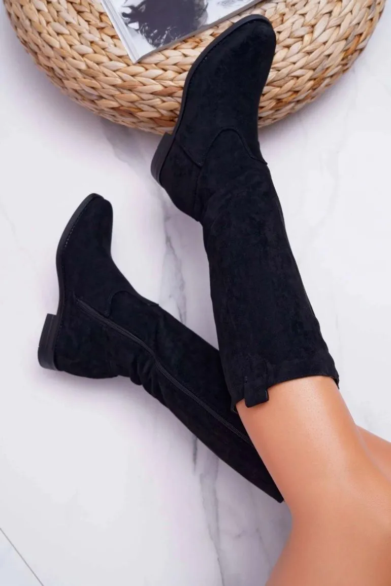 Damskie Kozaki Do Połowy Łydki Zamszowe Czarne Temet