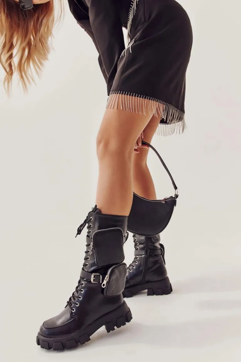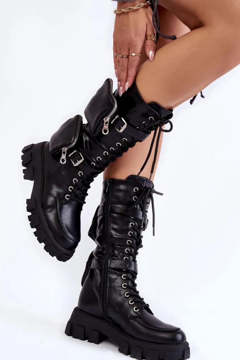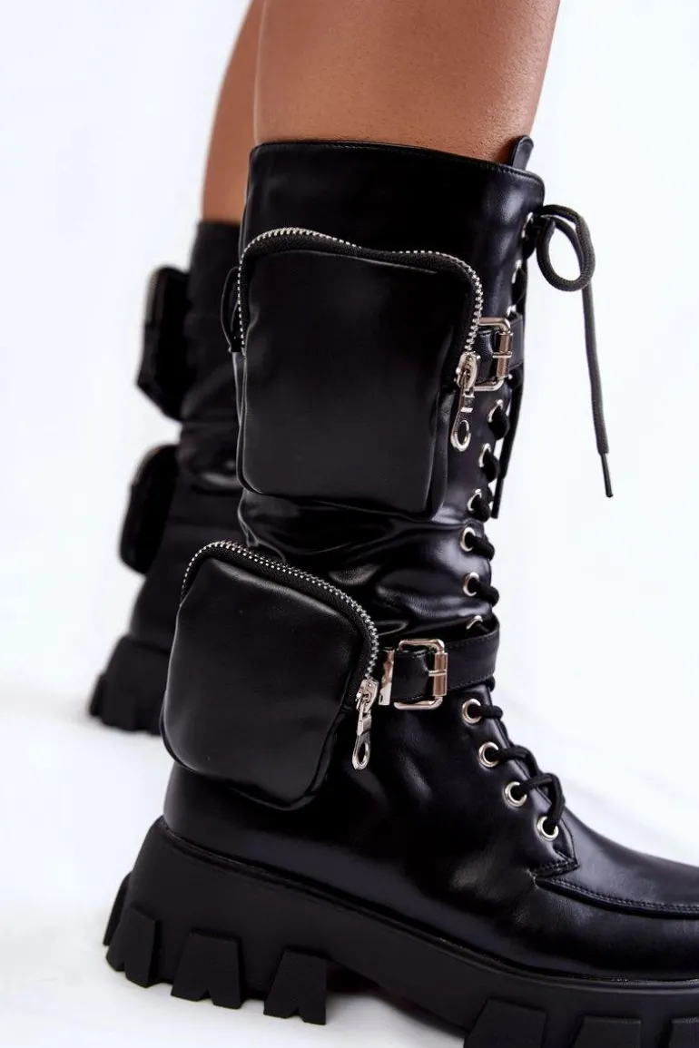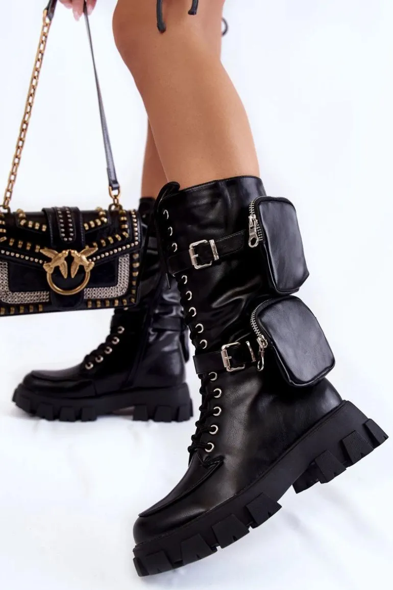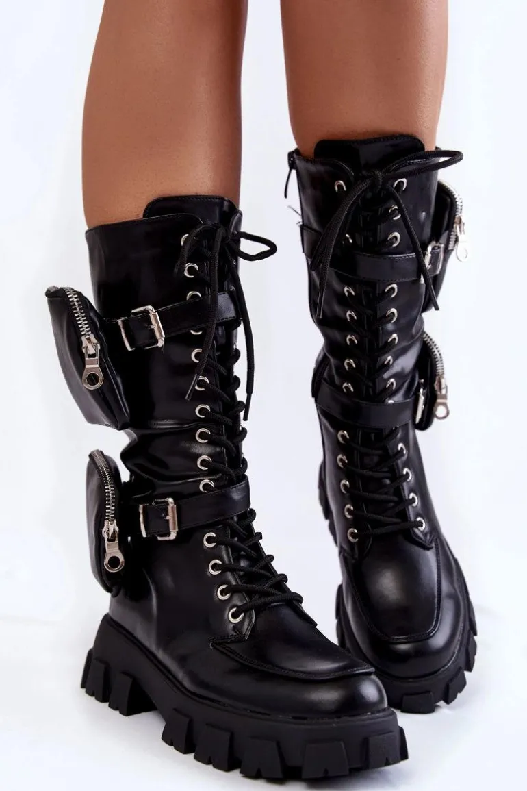 Świetne kozaki ze sznurowaniem na całości cholewki oraz suwakiem. Modny fason do połowy łydki. Kozaki zostały wykonane z eko skóry. Osadzone na płaskim obcasie oraz platformie ze żłobieniami. Zapiętek jest usztywniany. Kozaki nie posiadają ocieplenia. Wkładka została wykonana z materiału tekstylnego. Przy wyborze rozmiaru prosimy kierować tabelą rozmiarów.