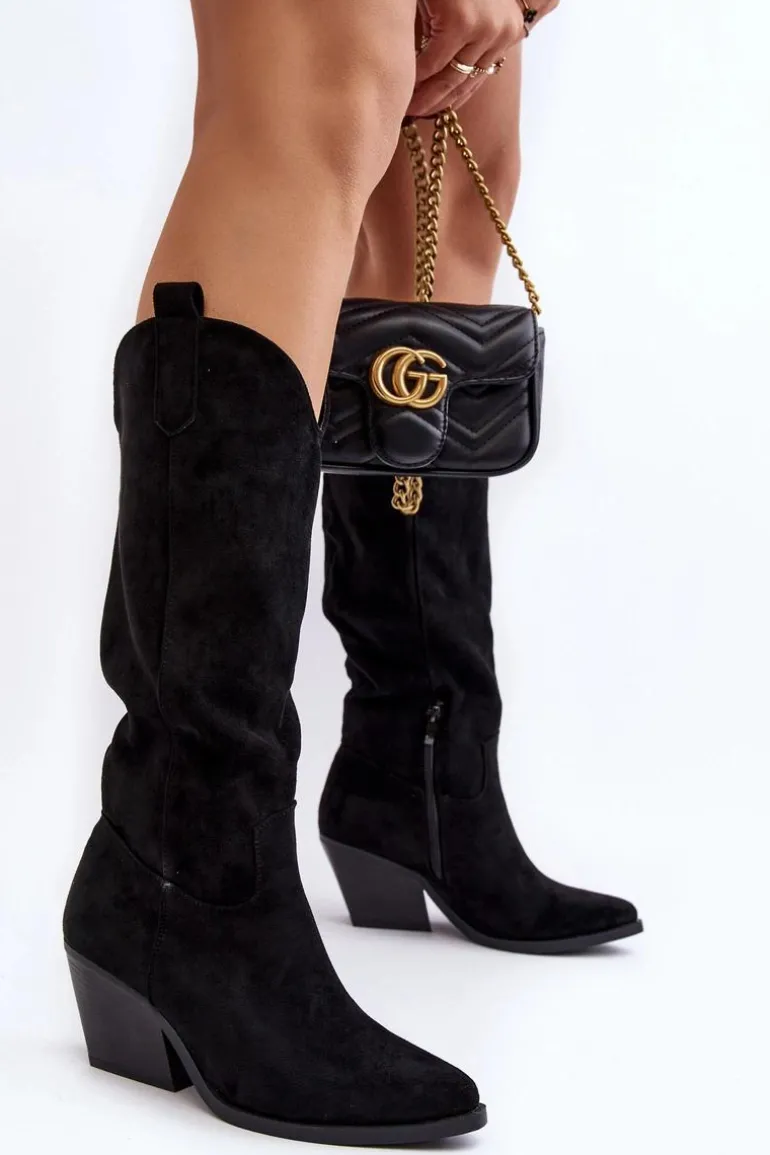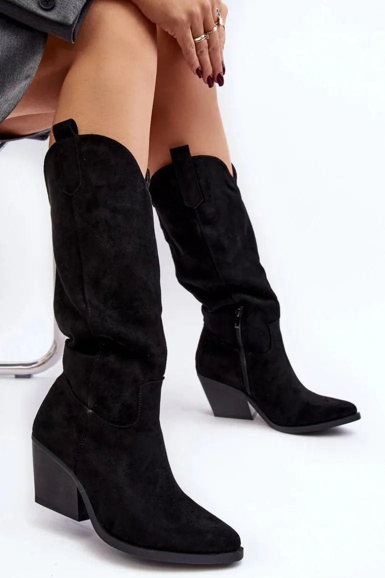 Modne kozaki-kowbojki uzupełnią wiele Twoich jesiennych stylizacji! Model wykonany z miłego eko zamszu. Kozaki są wsuwane, a także posiadają zamek na dole cholewki. Osadzone na obcasie w postaci słupka. Nosek w szpic optycznie wysmukli nogi. Kozaki posiadają usztywniany zapiętek. Koniecznie musisz je mieć! Przy wyborze rozmiaru prosimy sugerować się tabelą rozmiarów.