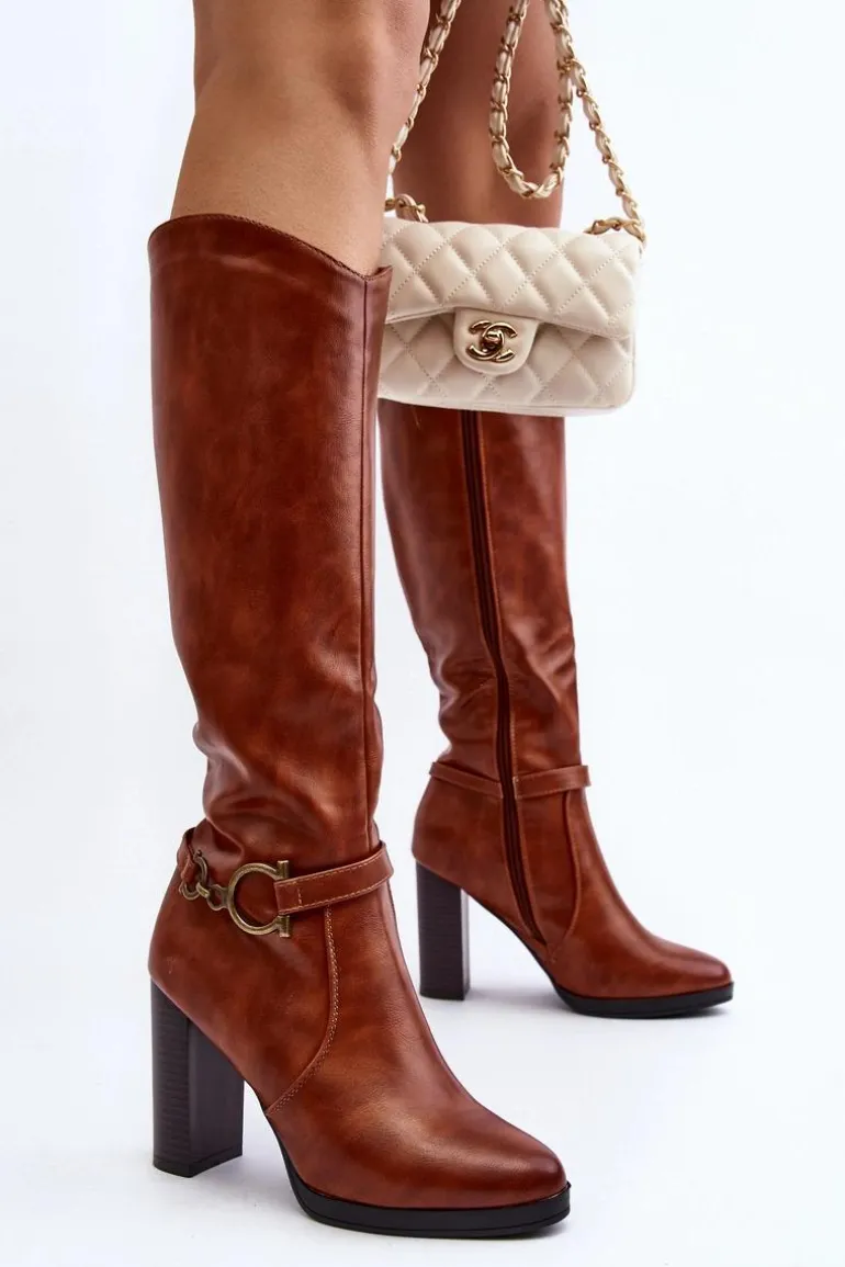 Eleganckie kozaki damskie z cholewką przed kolano. Wykonane z eko skóry. Zapinane na suwak. Środek ocieplony kocem obuwniczym. Osadzone na obcasie w postaci stabilnego słupka. Na cholewce cienki pasek z ozdobą. Noski w migdał. Wykorzystasz je w wielu stylizacjach! Przy wyborze rozmiaru prosimy sugerować się tabelą rozmiarów.