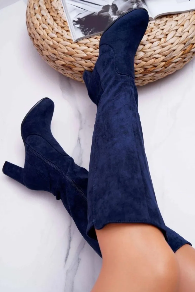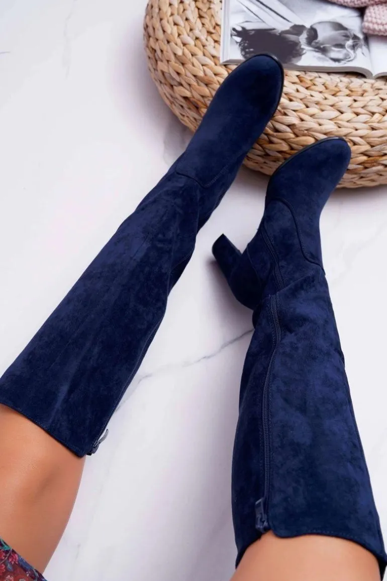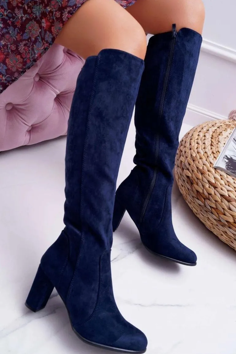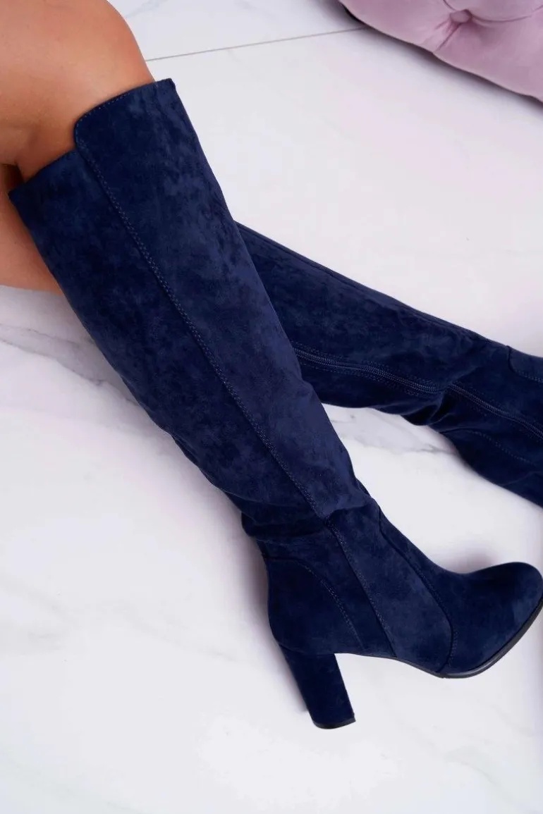 Damskie Kozaki Sergio Leone Zamszowe Granatowe KZ275