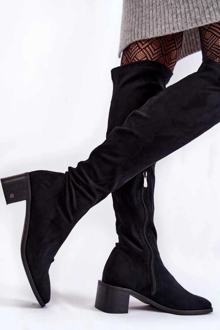 Klasyczne damskie kozaki osadzone na niskim obcasie w postaci klocka. Model ten jest wsuwany, z dodatkowym suwakiem z boku cholewki. Dodatkowo zapiętek jest usztywniany. Kozaki posiadają ocieplaną kocem obuwniczym wkładkę. Nosek kwadratowy. Te kozaki świetnie sprawdzą się w wielu stylizacjach. Idealne do mini spódniczek czy sukienek. Przy wyborze rozmiaru prosimy kierować tabelą rozmiarów.