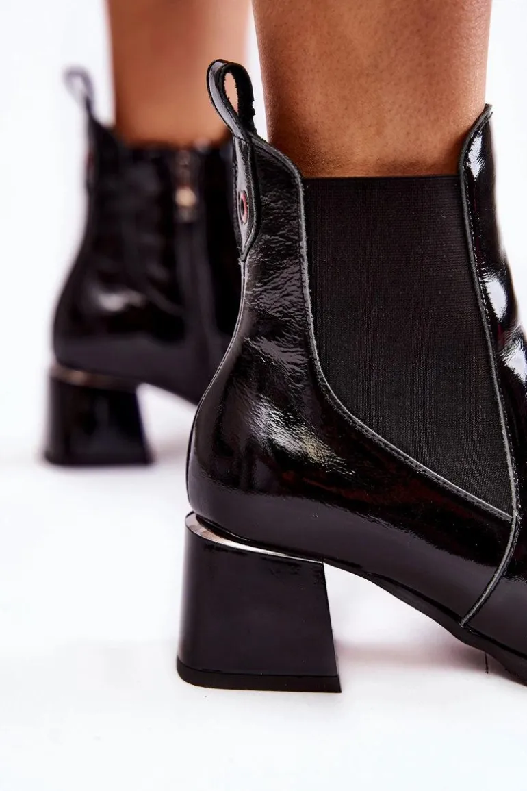 Damskie botki wykonane ze skóry naturalnej. Botki zostały osadzone na niskim, masywnym obcasie. Cholewka za kostkę jest w środku ocieplana kocem obuwniczym. Usztywniany zapiętek pozwala na stabilizację stopy. Miękka wkładka zapewni wygodę oraz komfort podczas użytkowania. Botki na obcasie to doskonały wybór do jesiennych stylizacji. Przy wyborze rozmiaru prosimy sugerować się tabelą rozmiarów.