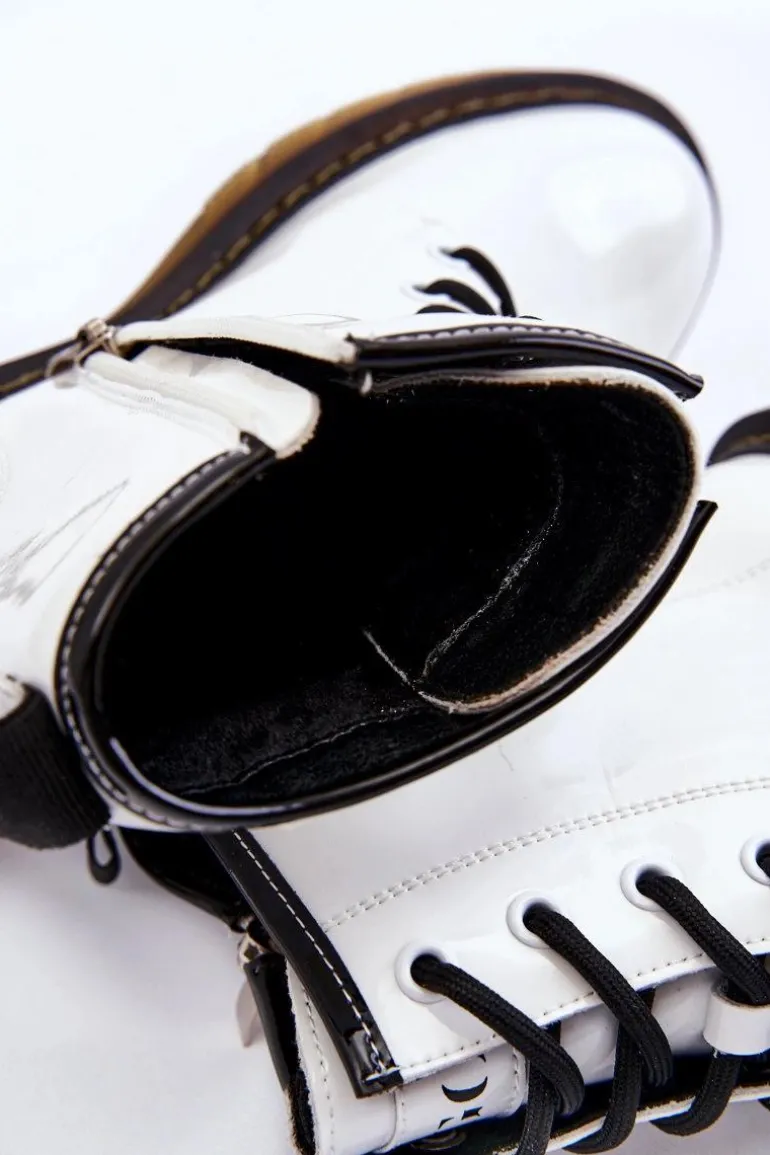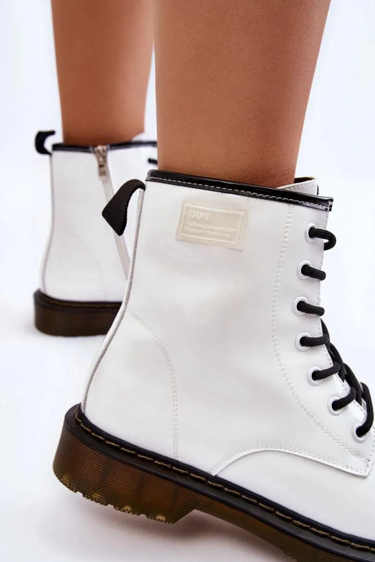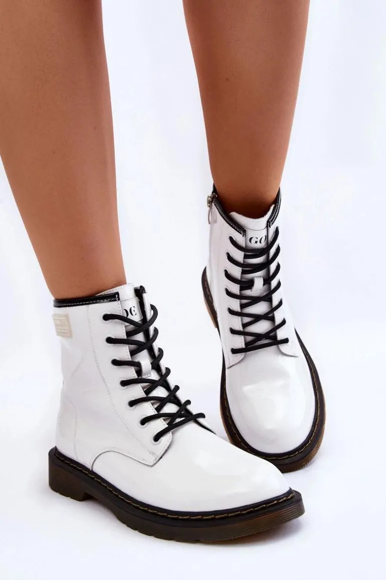 Damskie Lakierowane Botki Ocieplane GOE II2N4051 Białe