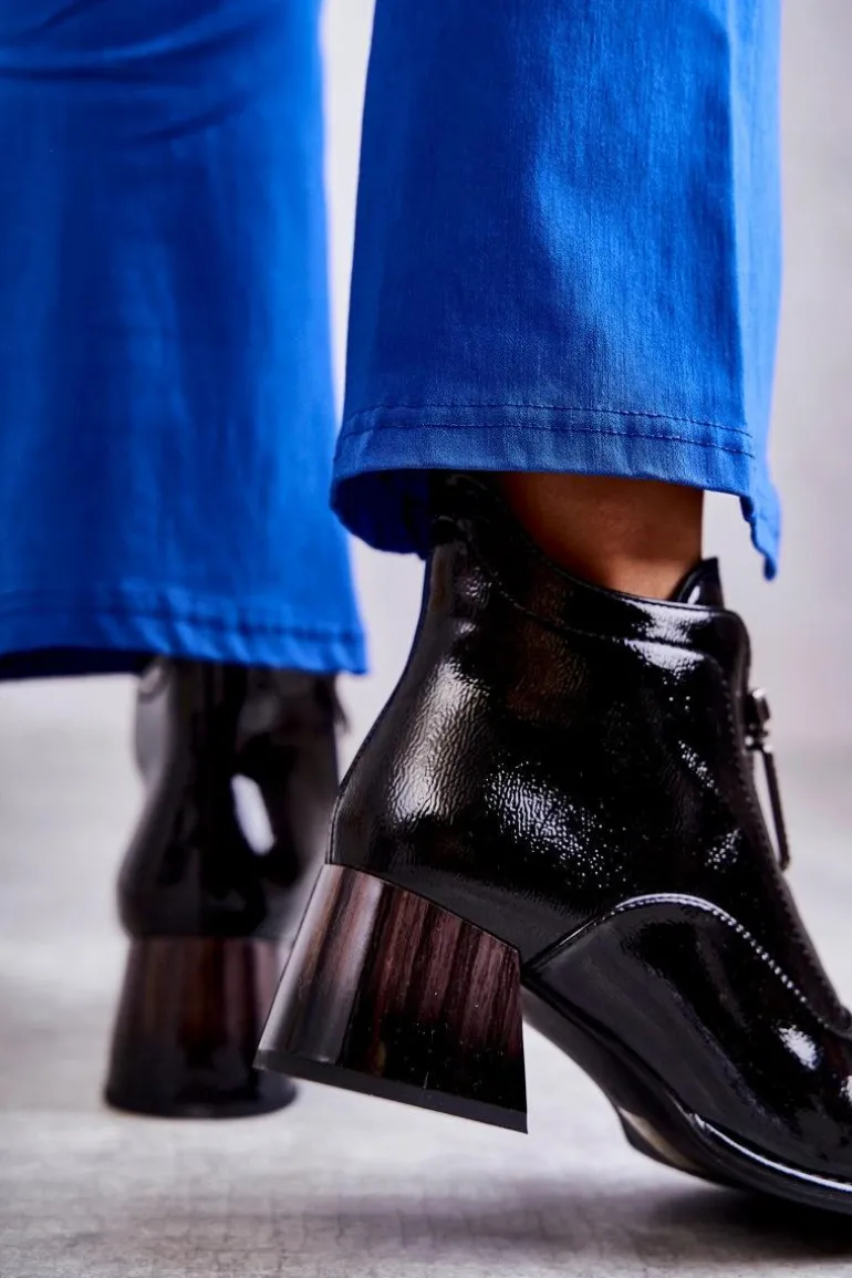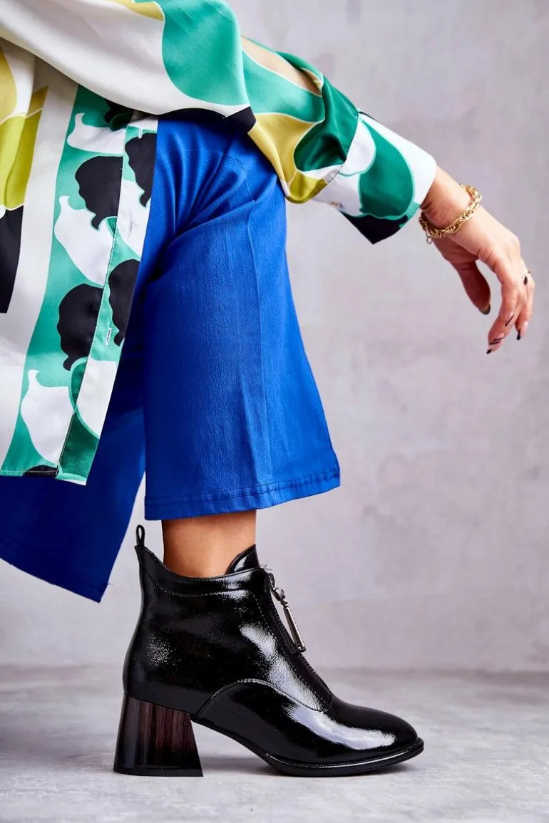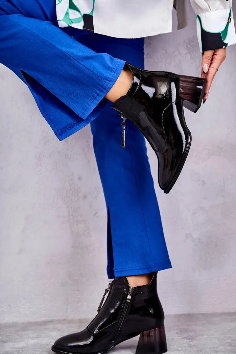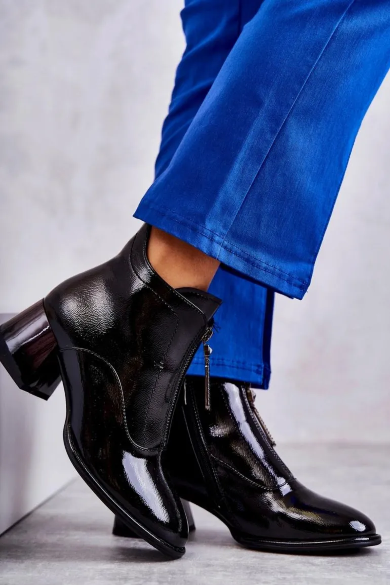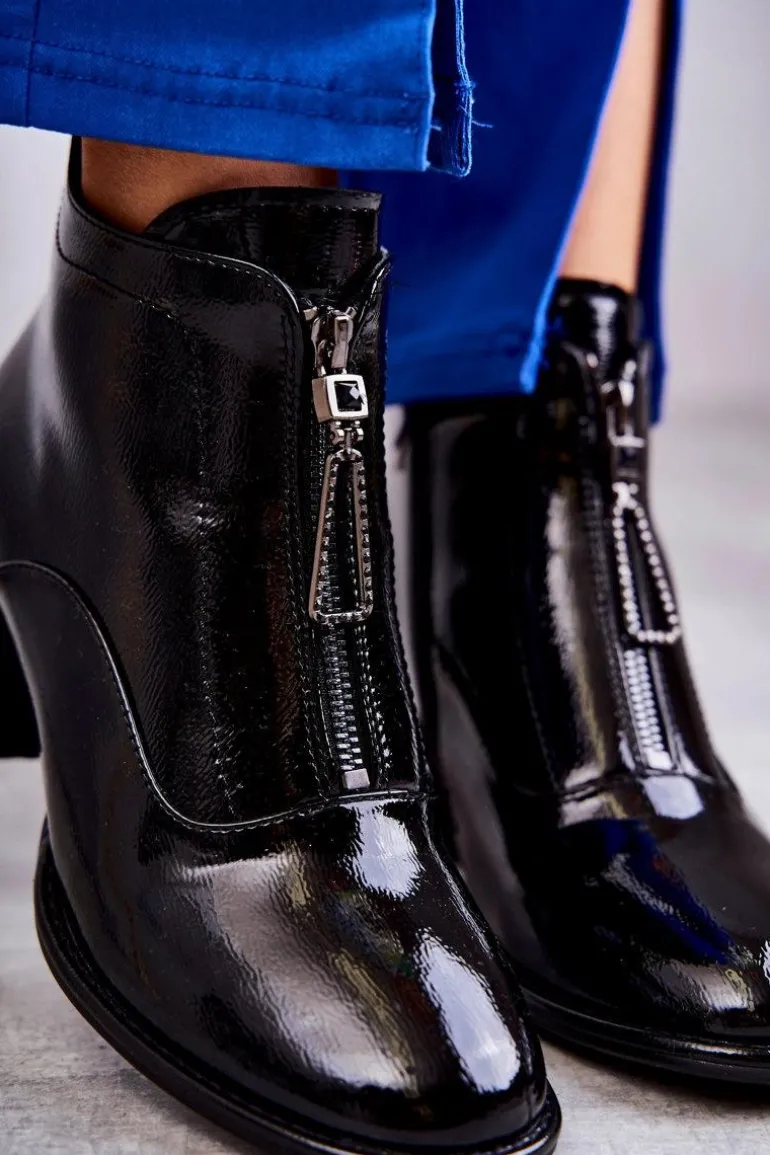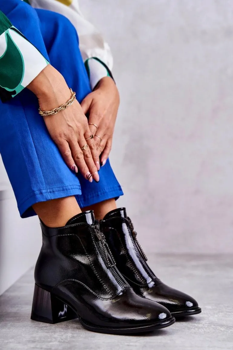 Damskie botki zostały wykonane z eko skóry. Posiadają dwa ozdobne zamki — jeden z przodu, drugi z boku. Botki zostały osadzone na niskim, masywnym obcasie. Cholewka za kostkę jest w środku ocieplana kocem obuwniczym. Dodatkowo zapiętek jest usztywniany. Miękka wkładka zapewni wygodę oraz komfort podczas użytkowania. Przy wyborze rozmiaru prosimy sugerować się tabelą rozmiarów.