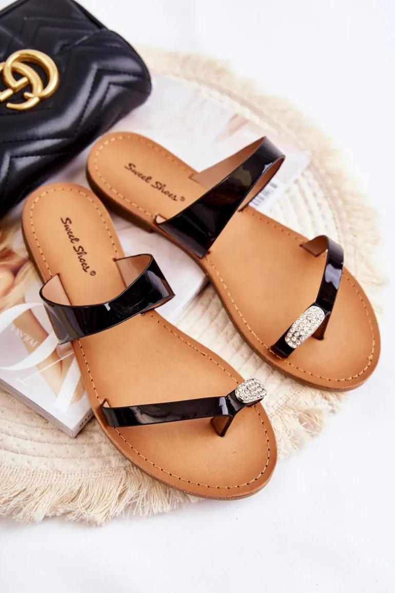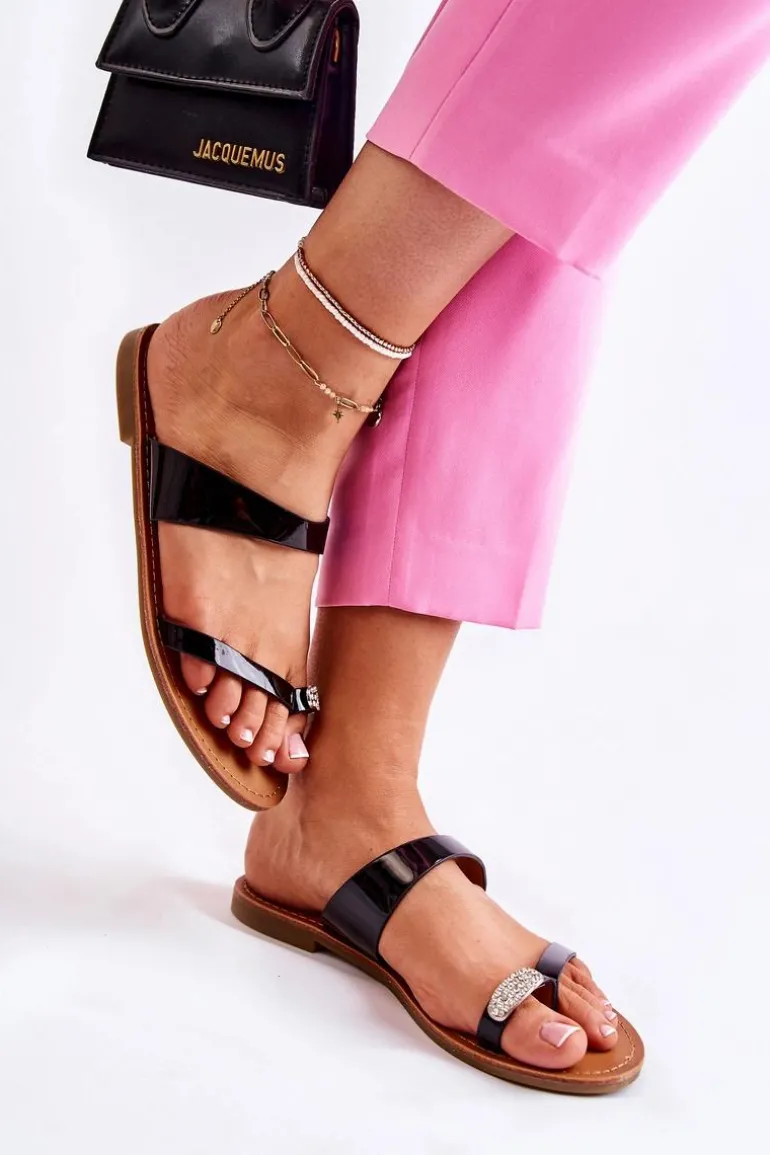 Damskie Lakierowane Klapki Japonki Czarne Jimena