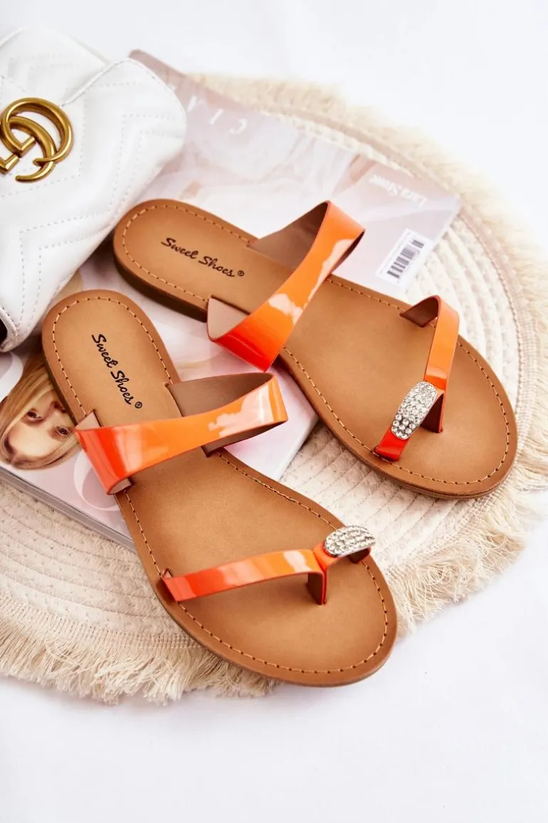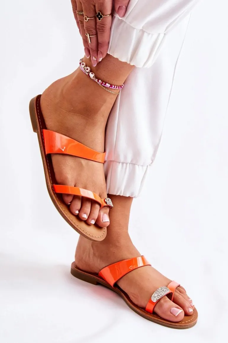 Damskie Lakierowane Klapki Japonki Pomarańczowe Jimena