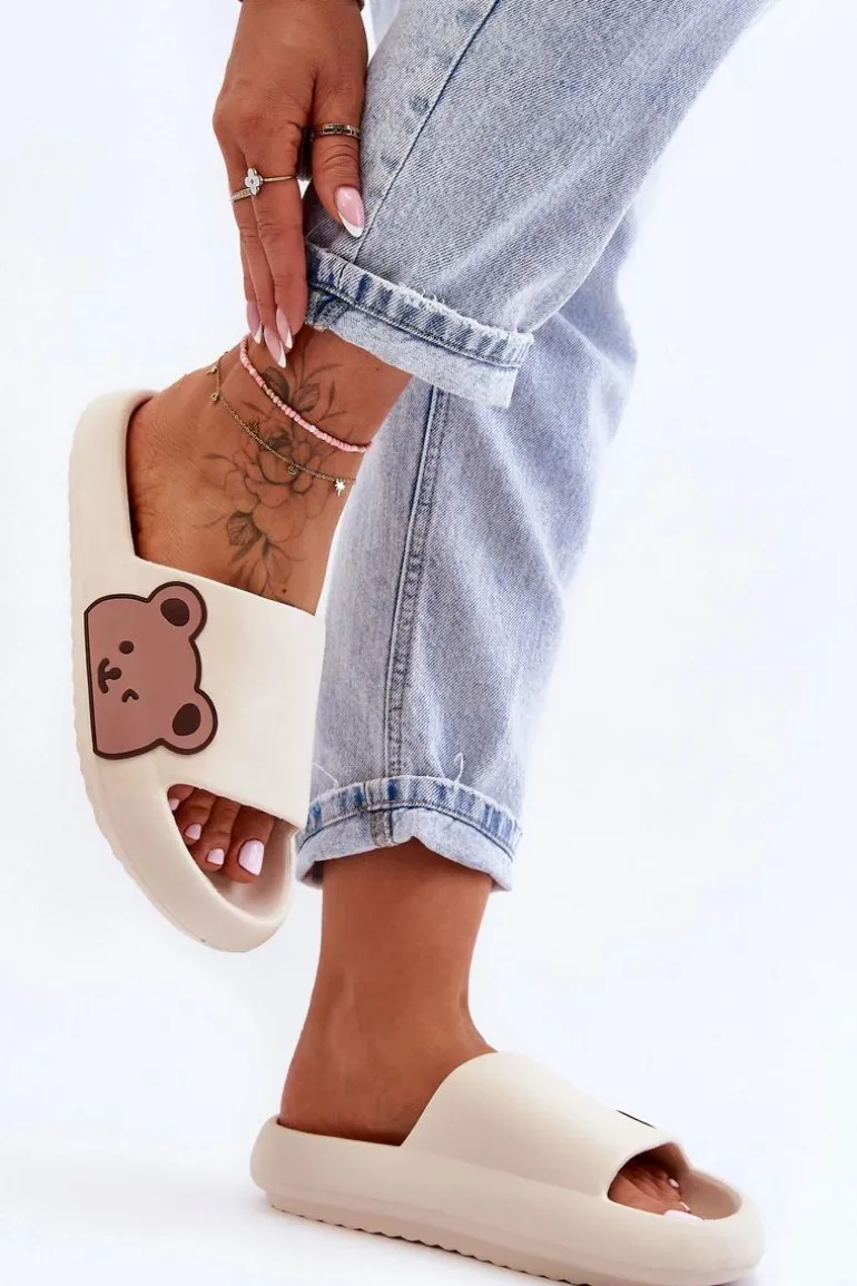 Urocze, damskie klapki zostały wykonane z piankowego tworzywa. Na boku cholewki znajduje się uroczy motyw misia. Model ten został osadzony na masywnej platformie. Możesz ich także używać jako obuwie domowe zamiast papci. Ten lekki model jest niezwykle wygodny podczas użytkowania. Koniecznie powinnaś je mieć! Przy wyborze rozmiaru prosimy sugerować się tabelą rozmiarów.