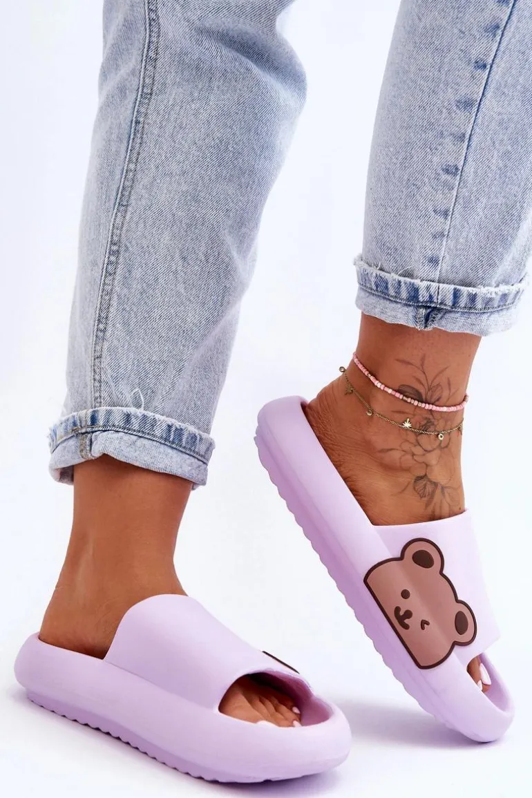 Urocze, damskie klapki zostały wykonane z piankowego tworzywa. Na boku cholewki znajduje się uroczy motyw misia. Model ten został osadzony na masywnej platformie. Możesz ich także używać jako obuwie domowe zamiast papci. Ten lekki model jest niezwykle wygodny podczas użytkowania. Koniecznie powinnaś je mieć! Przy wyborze rozmiaru prosimy sugerować się tabelą rozmiarów.