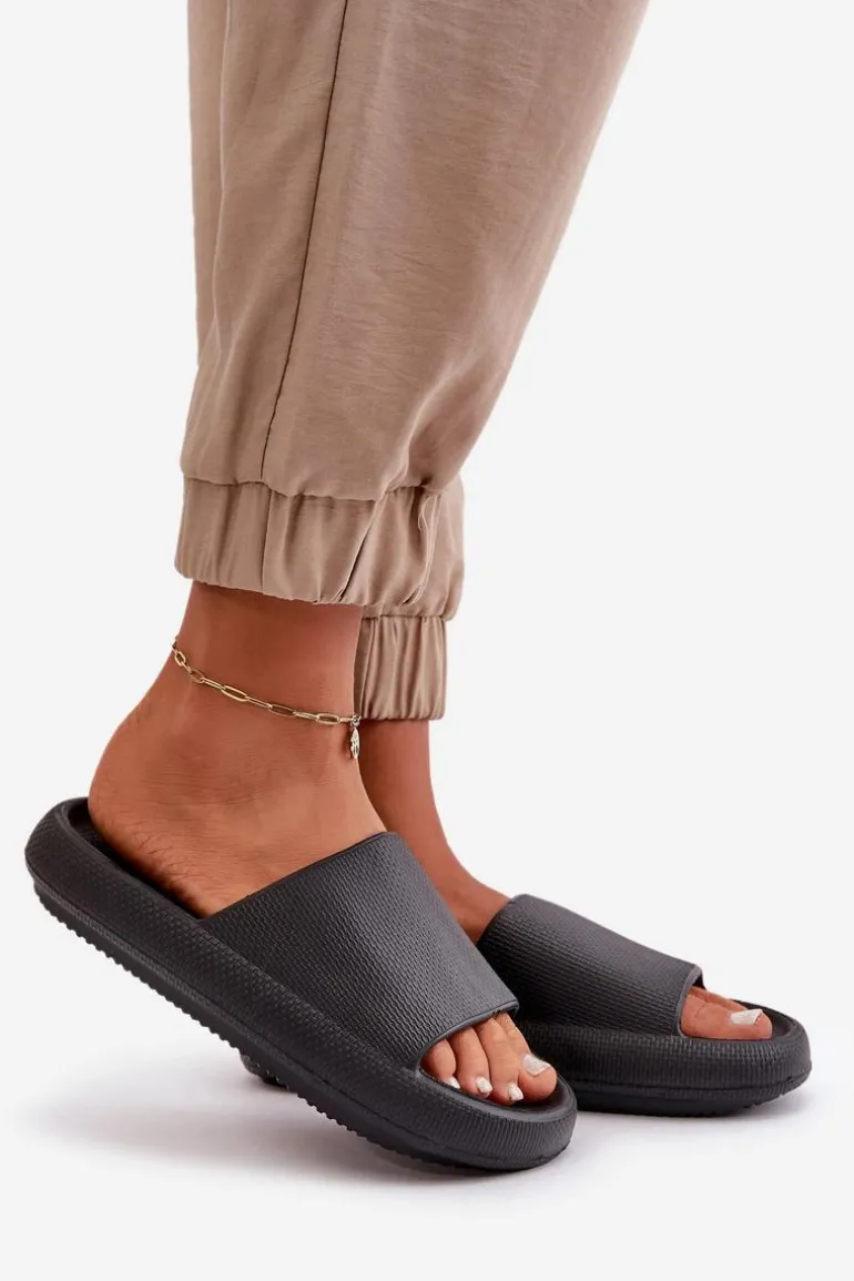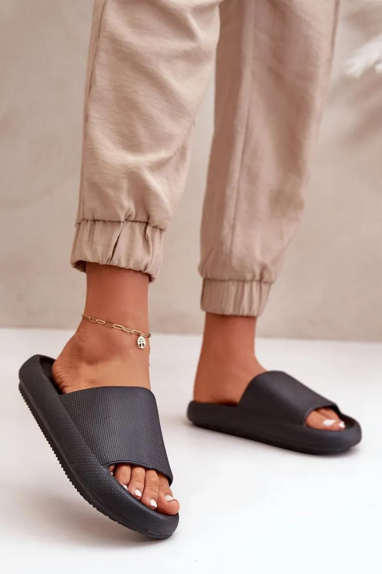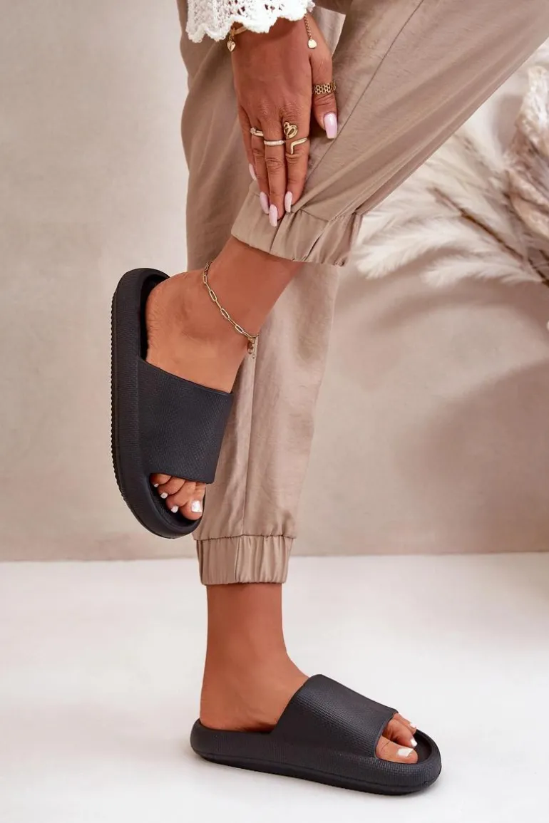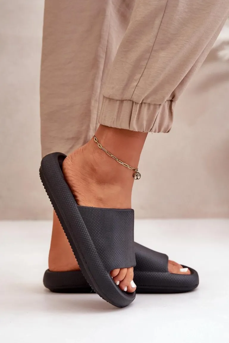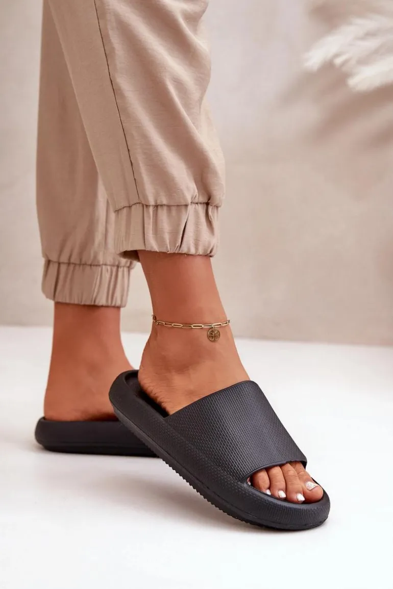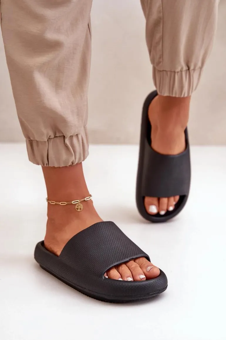 Damskie Lekkie Piankowe Klapki Na Grubej Podeszwie Czarne Querceria