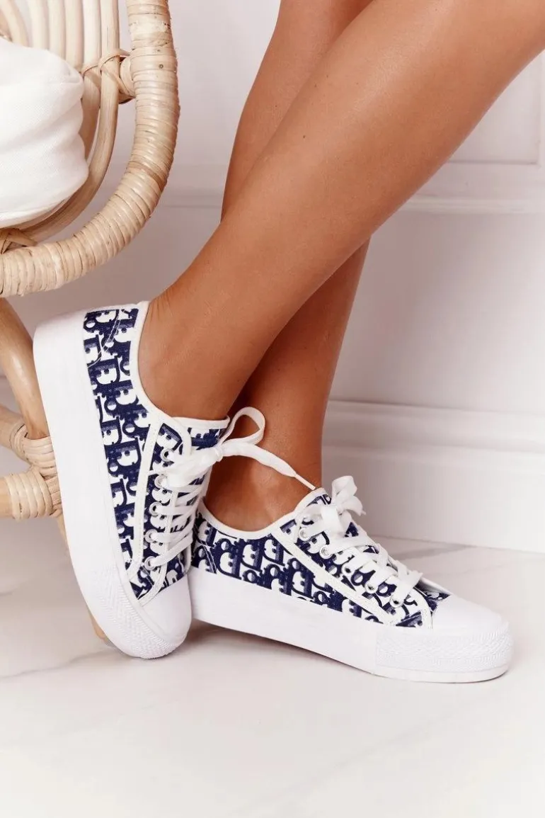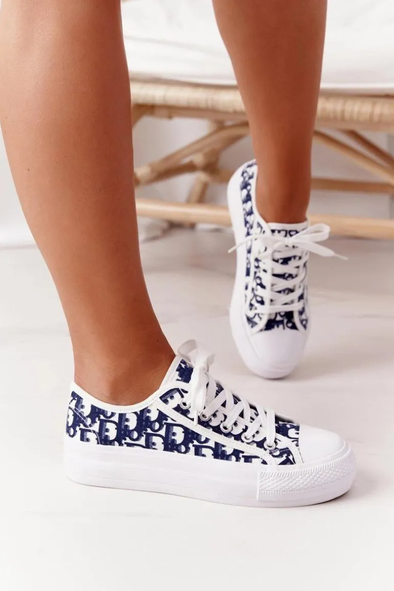 Damskie Logowane Trampki Biało-Granatowe Daphne