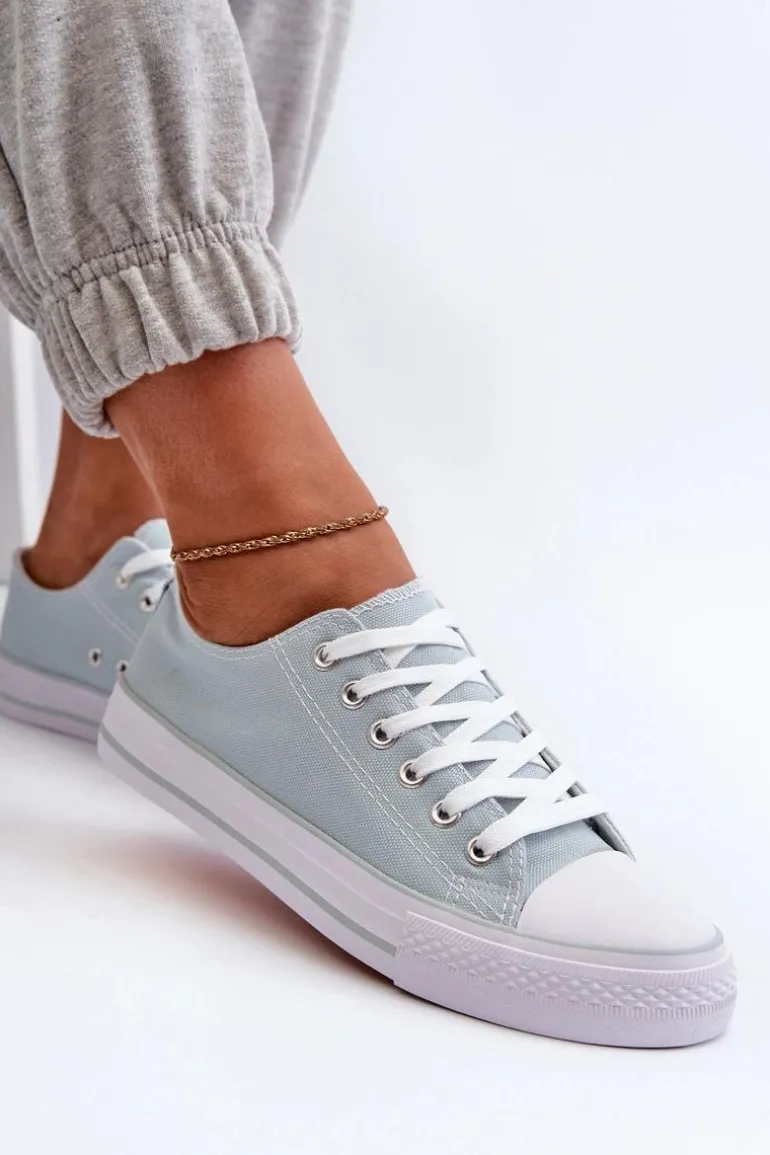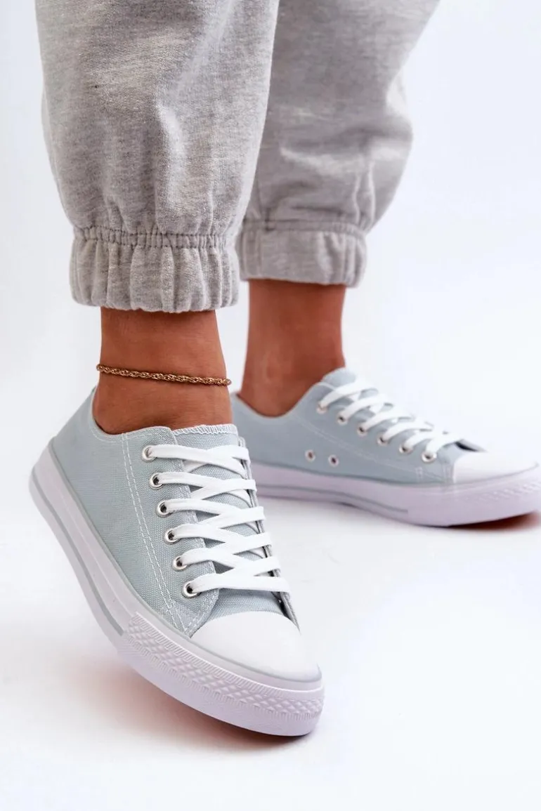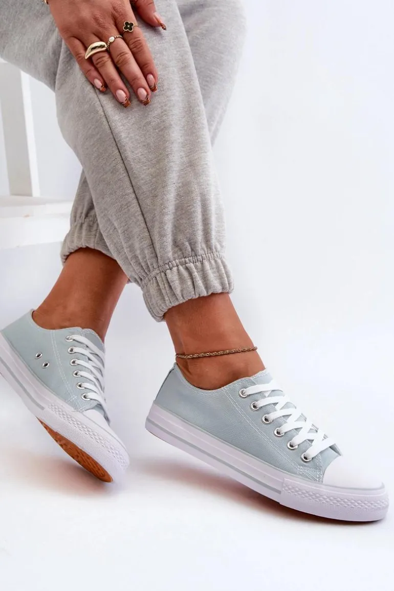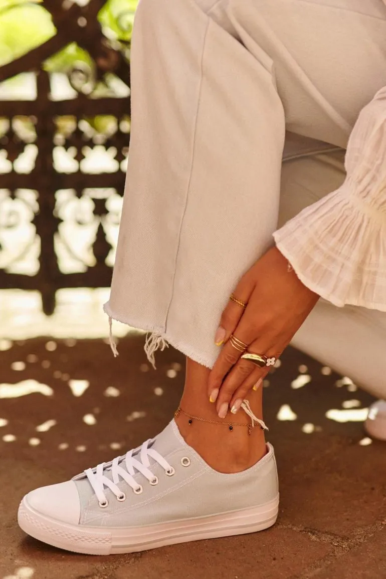 Niskie trampki damskie osadzone na gumowej podeszwie. Idealne na co dzień, łączą wygodę z ponadczasowym stylem. Perfekcyjny wybór do casualowych stylizacji. Model ten koniecznie powinien znaleźć się w Twojej szafie! Przy wyborze rozmiaru prosimy sugerować się tabelą rozmiarów.