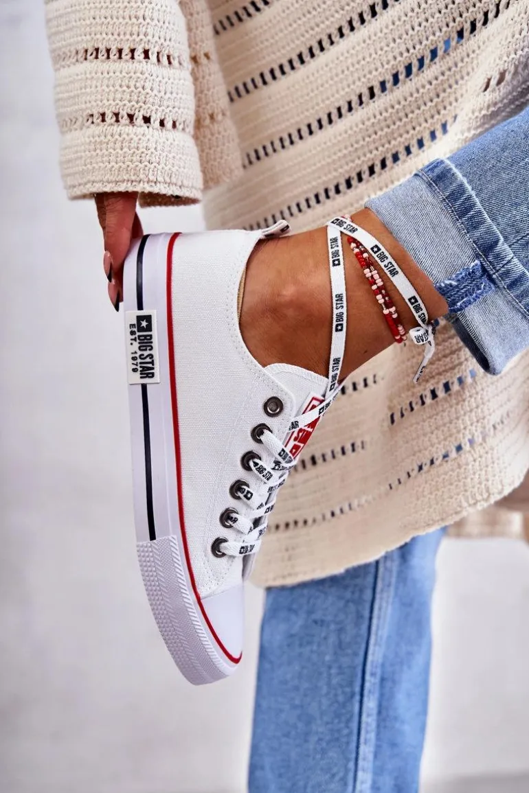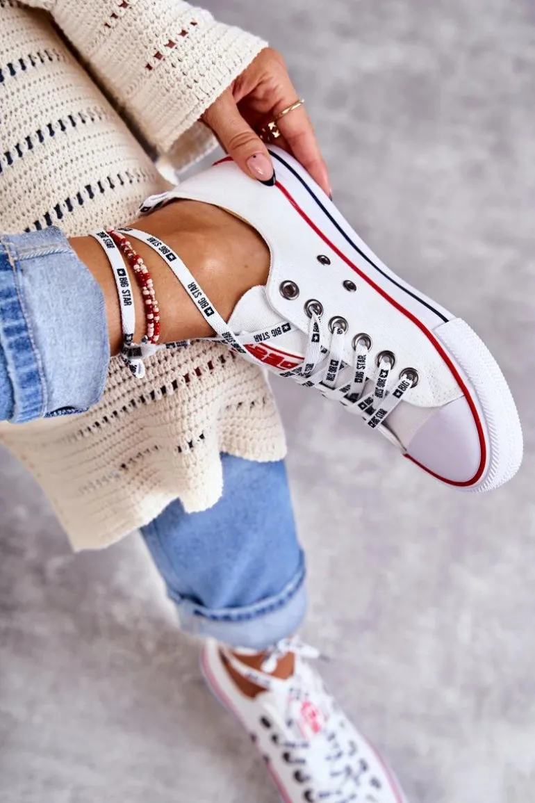 Ponadczasowe trampki damskie marki Big Star zostały wykonane z materiału tekstylnego. Posiadają gumowy, wzmacniany nosek. Model charakteryzuje się logowanymi sznurowadłami. Podeszwa wraz z platformą wykonane z gumowego tworzywa, dzięki którym model ten jest antypoślizgowy. Wkładka materiałowa. Klasyczne trampki z pewnością świetnie będą prezentować się w wielu stylizacjach. Przy wyborze rozmiaru prosimy sugerować się tabelą rozmiarów.