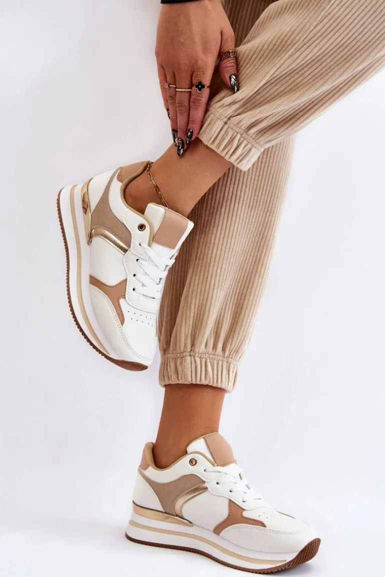 Damskie buty sportowe zostały wykonane z połączenia eko zamszu oraz eko skóry. Model sznurowany. Sneakersy osadzono na platformie i koturnie. Ten model do kostki świetnie sprawdzi się w wielu stylizacjach. Miękka wkładka wykonana z materiału zapewni komfort podczas użytkowania. Przy wyborze rozmiaru prosimy kierować się tabelą rozmiarów.