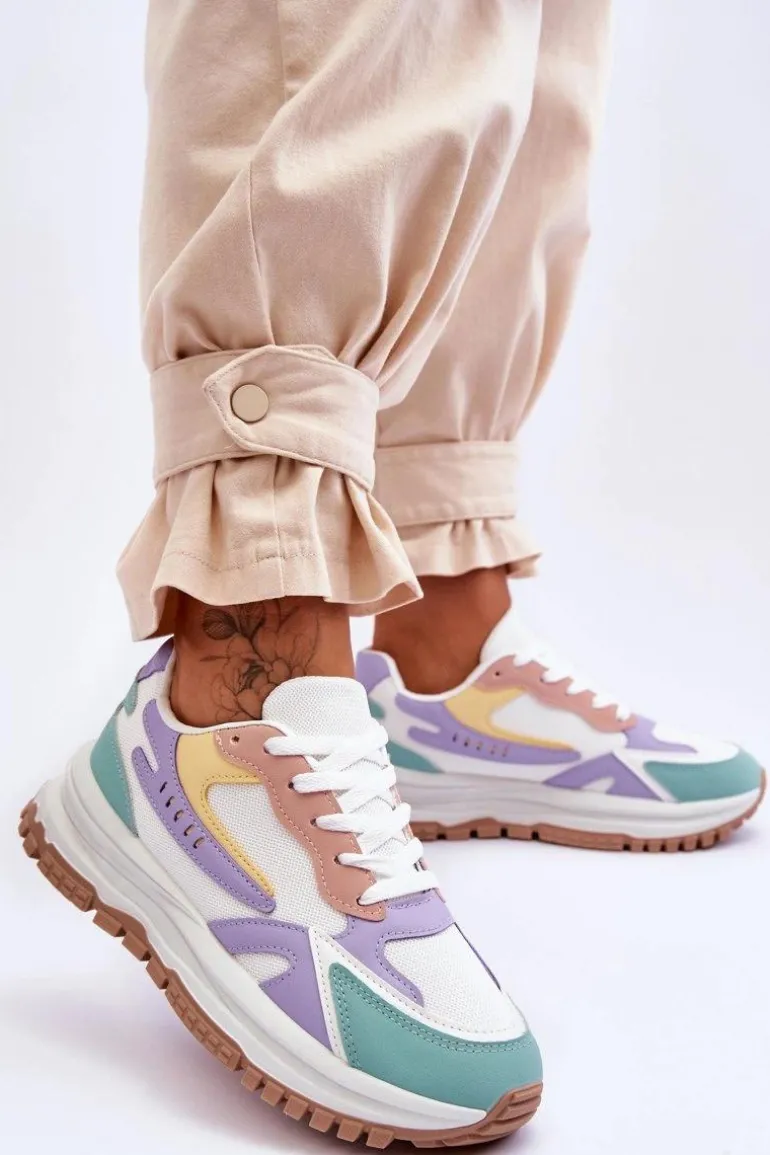 Damskie buty sportowe wykonane z połączenia eko skóry oraz materiału tekstylnego. Zostały osadzone na masywnej platformie, która delikatnie uniesie Twoją sylwetkę. Model ten posiada klasyczne sznurowanie, które pozwoli na odpowiednie dopasowanie obuwia do tęgości nogi. Dodatkowo wkładka w tych butach jest wymienna. Przy wyborze rozmiaru prosimy kierować się tabelą rozmiarów.