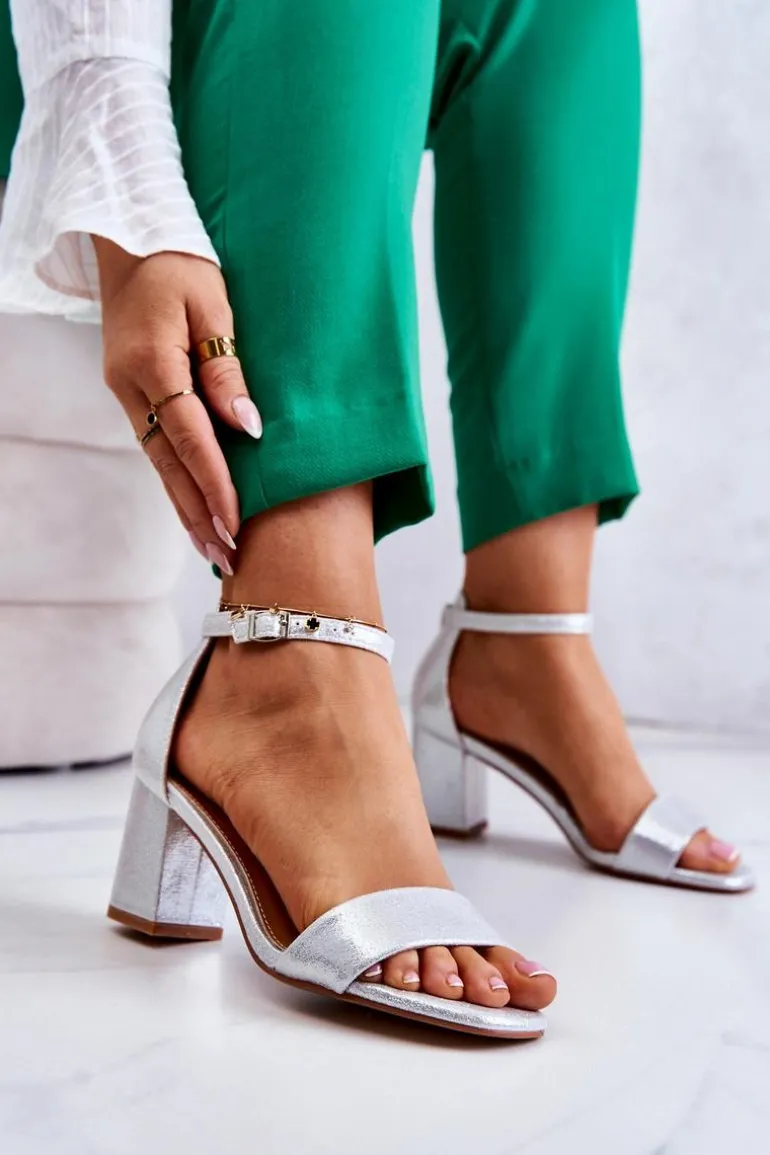 Piękne sandałki na obcasie zostały wykonane z błyszczącego materiału tekstylnego. Posiadają usztywniany zapiętek. Zapinane wokół kostki na regulowany pasek ze sprzączką. Miękka, eko skórzana wkładka zapewnia komfort podczas użytkowania. Stabilny obcas w postaci szerokiego słupka. Posiadają odkryty nosek i zakrytą piętę. Idealne na różnego rodzaju uroczystości. Świetnie będą prezentować się zarówno z eleganckimi sukniami, jak i spodniami. Przy wyborze rozmiaru prosimy sugerować się tabelą rozmiarów.