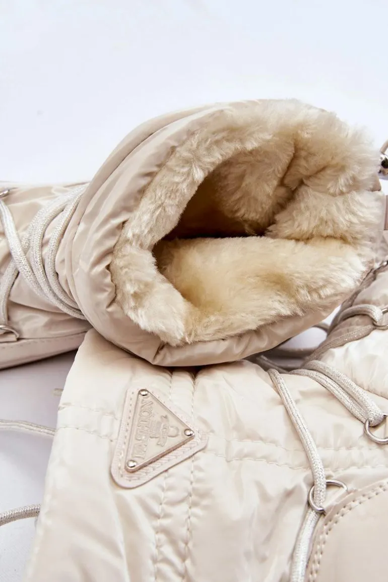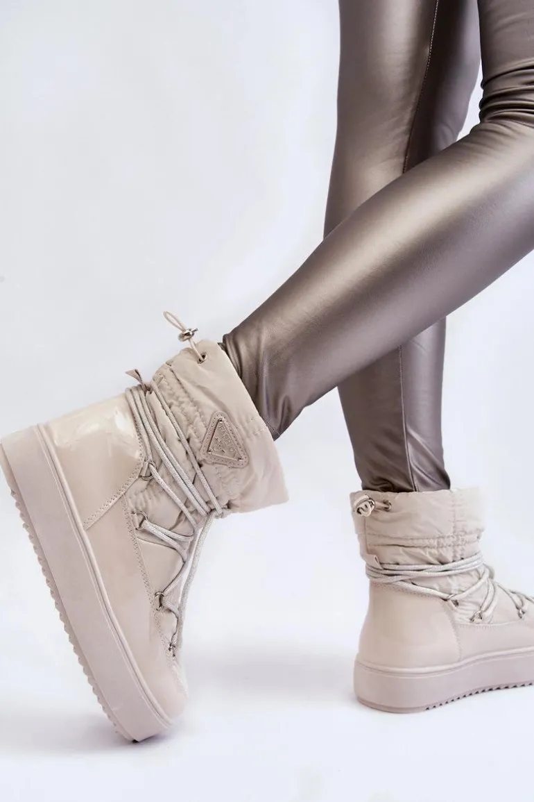 Damskie śniegowce zostały wykonane z materiałów odpornych na wiatr oraz mróz w połączeniu z eko skórą. Model wsuwany z dodatkowym sznurowaniem z przodu oraz ściągaczem u góry cholewki. Śniegowce zostały ocieplone miłym w dotyku futerkiem. Osadzone na platformie, która izoluje od zimnego i mokrego podłoża. Ten model powinien być właśnie Twój! Przy wyborze rozmiaru prosimy sugerować się tabelą rozmiarów.