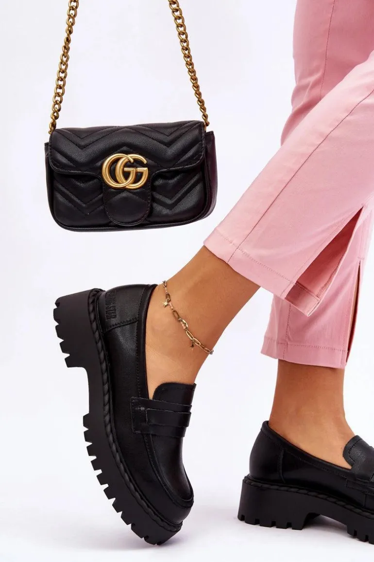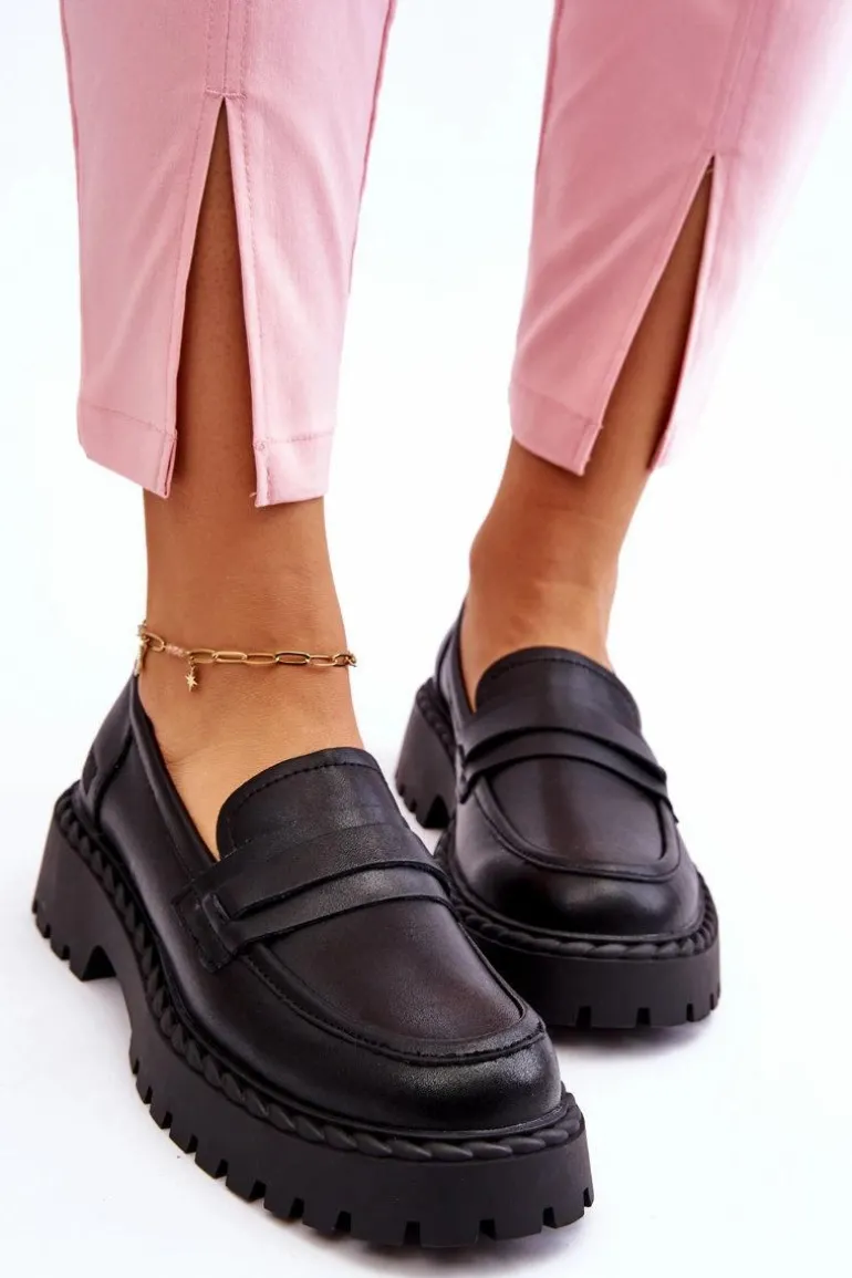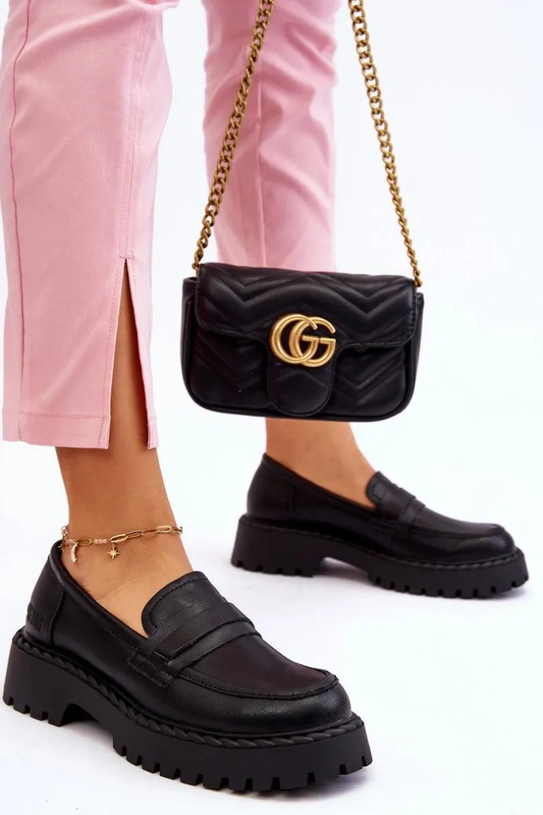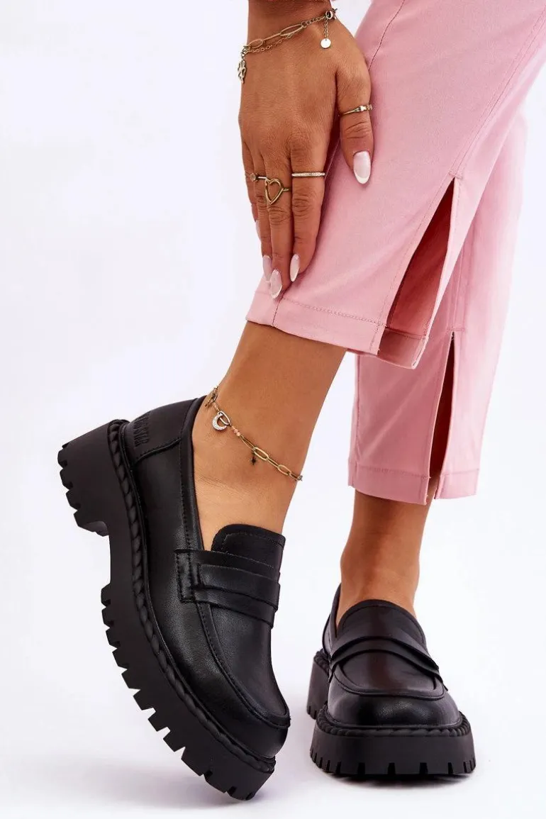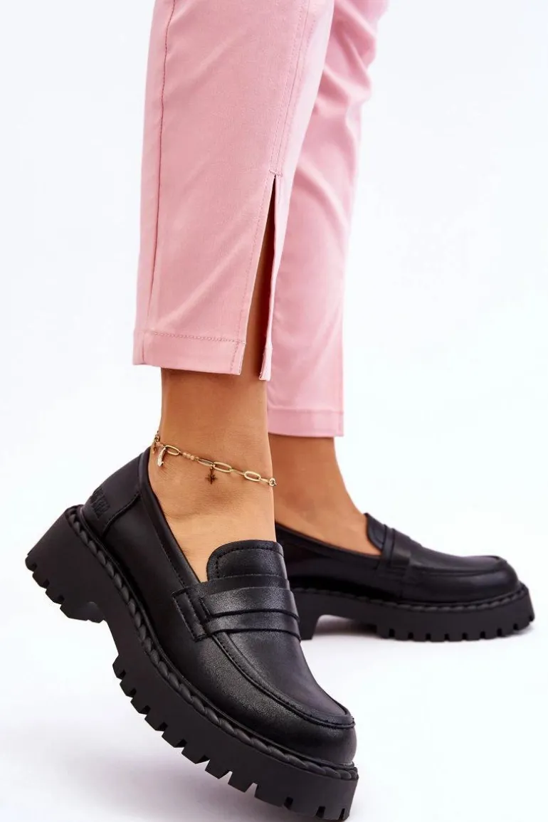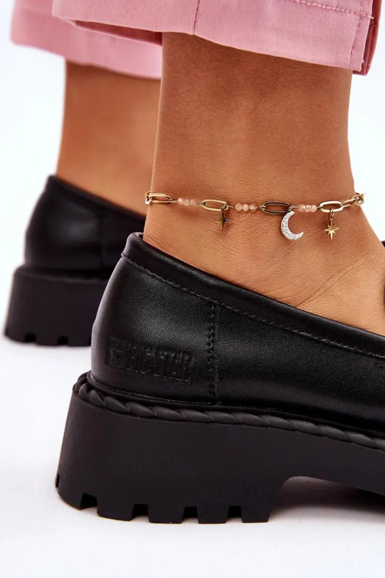 Damskie Mokasyny Półbuty Skórzane Big Star LL274458 Czarne