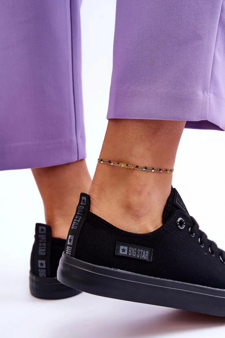 Klasyczny model damskich trampek przyda się każdej kobiecie ceniącej sobie komfort i wygodę podczas użytkowania. Z boku znajduje się ozdobne logo marki Big Star. Model klasycznie sznurowany. Miękka wkładka została wykonana z tkaniny. Nosek zaokrąglony, wzmocniony gumowym tworzywem. Podeszwa antypoślizgowa. Koniecznie musisz je mieć! Przy wyborze rozmiaru prosimy sugerować się tabelą rozmiarów.