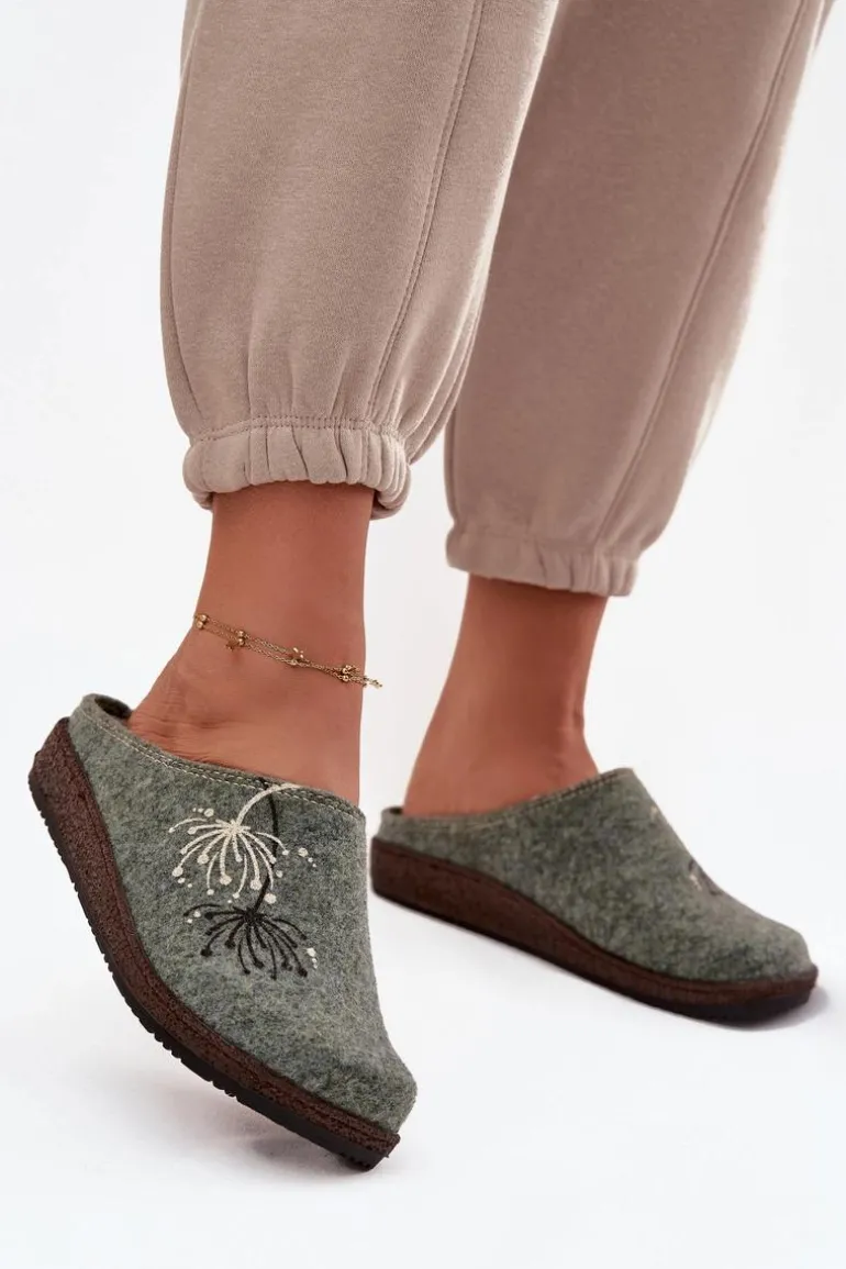 Damskie kapcie wykonane z filcowej tkaniny to lekka i wygodna propozycja do codziennego użytku w domu. Szerokie, zaokrąglone noski zapewniają swobodę ruchów i komfort dla palców, a profilowana filcowa wkładka dopasowuje się do kształtu stopy, wspierając jej naturalne ułożenie. Elastyczna podeszwa gwarantuje stabilność i miękkość przy każdym kroku. To praktyczne i wygodne kapcie, które łączą prostotę z funkcjonalnością, idealne dla kobiet ceniących komfort. Prosimy o skorzystanie z tabeli rozmiarów przy wyborze odpowiedniego rozmiaru.