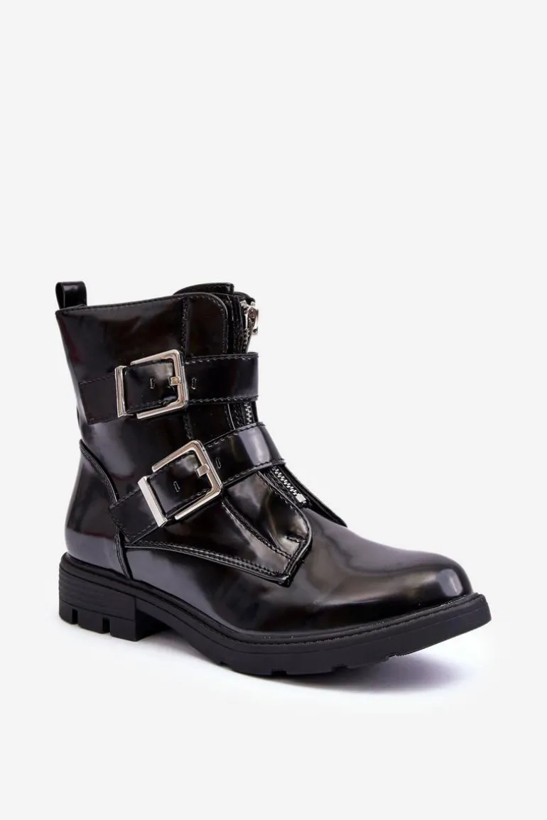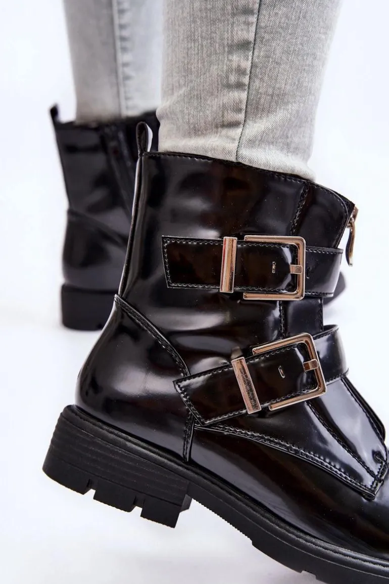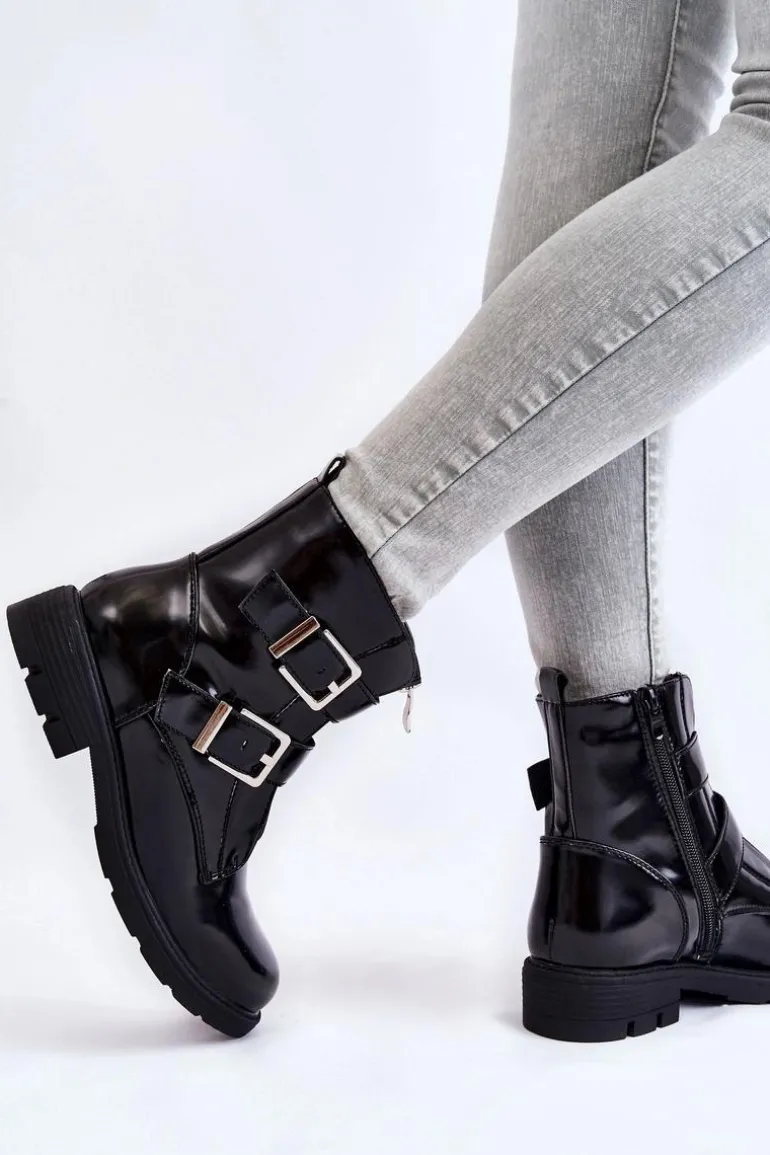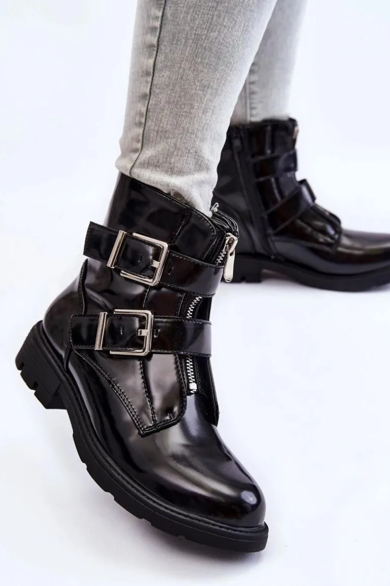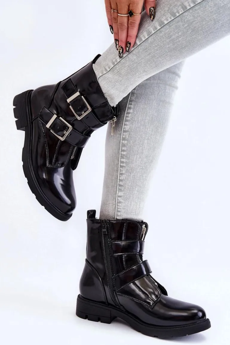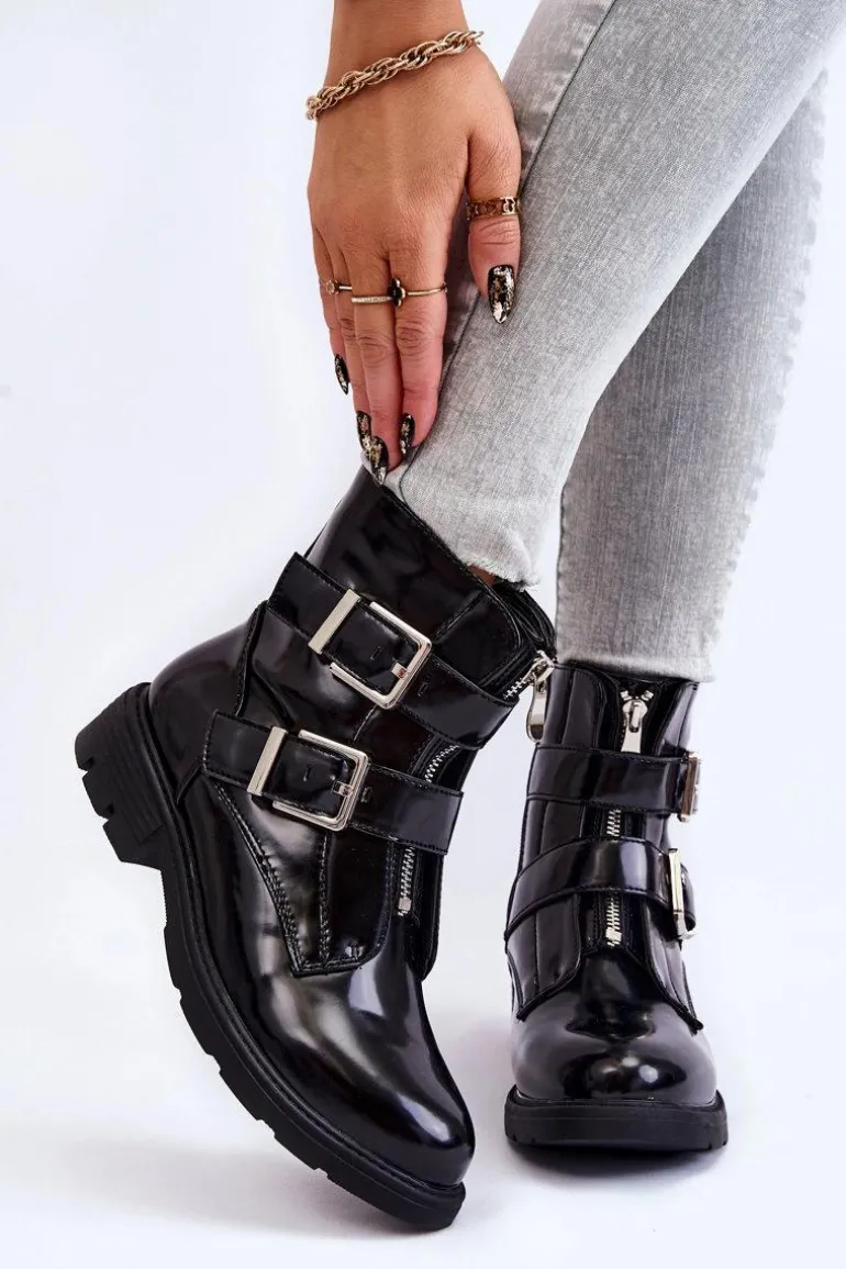 Botki damskie to MUST HAVE w szafie każdej kobiety! Model ten jest zapinany na suwak z boku oraz z przodu. Dodatkowo botki posiadają regulowane paski z klamrami. Zapiętek jest usztywniany. Wewnątrz znajduje się ocieplenie w postaci koca obuwnicza. Osadzone na płaskim obcasie i delikatnej platformie. Przy wyborze rozmiaru prosimy sugerować się tabelą rozmiarów.