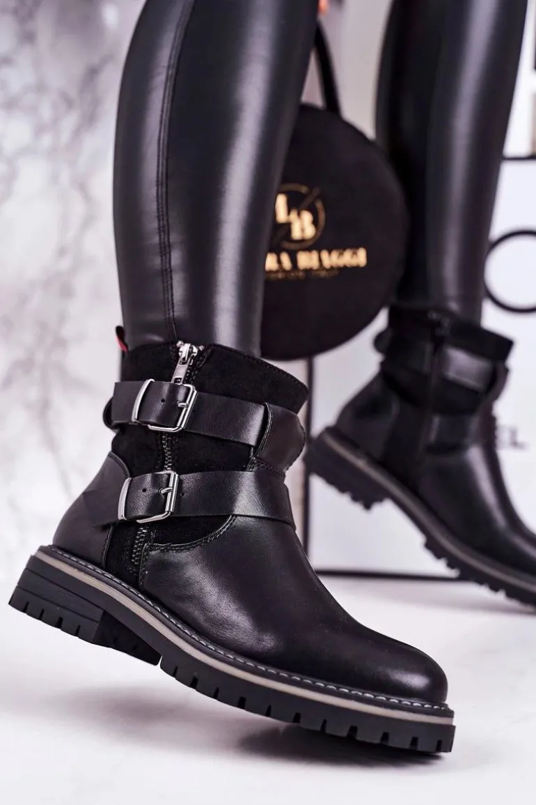 Damskie Ocieplane Botki Workery Czarne Intensity