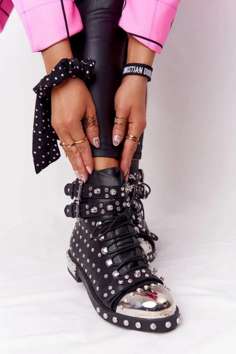 Wyjątkowe botki z dżetami i klamrami. Workery wykonane są ze skóry ekologicznej, posiadają ocieplenie w postaci koca obuwniczego. Botki świetnie wpiszą się w stylizacje glam rock lub grunge. Koniecznie sprawdź całą naszą kolekcje damskich botków! Przy wyborze rozmiaru prosimy sugerować się tabelą rozmiarów.