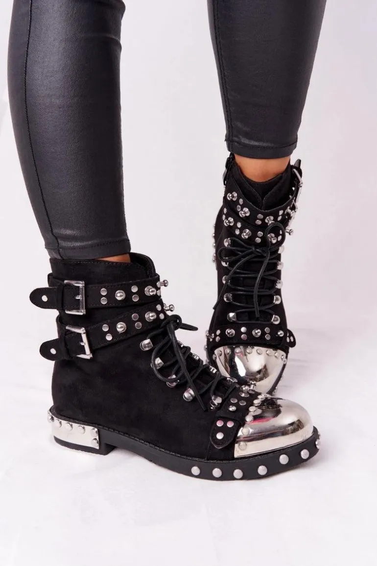 Wyjątkowe botki z dżetami i klamrami. Workery wykonane są z eko zamszu, posiadają ocieplenie w postaci koca obuwniczego. Botki świetnie wpiszą się w stylizacje glam rock lub grunge. Koniecznie sprawdź całą naszą kolekcje damskich botków! Przy wyborze rozmiaru prosimy sugerować się tabelą rozmiarów.