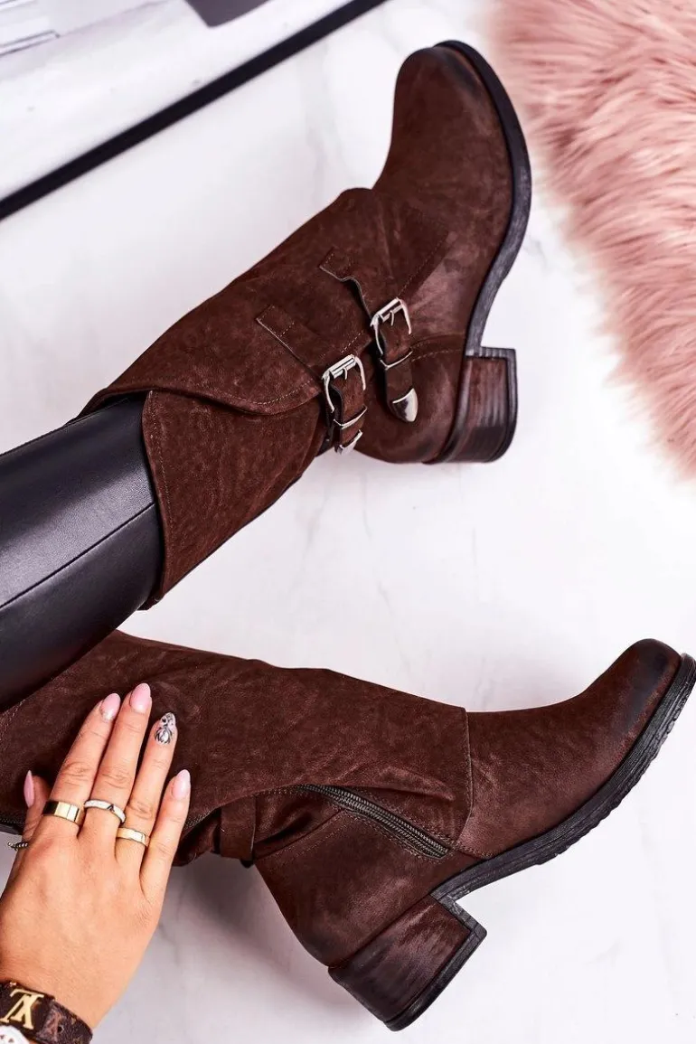 Damskie Ocieplane Botki Z Klamrami Brązowe Cassidy