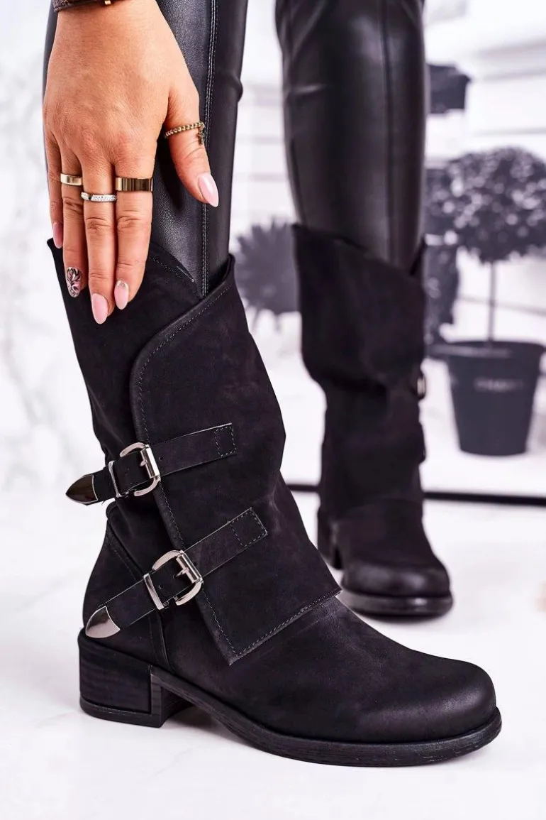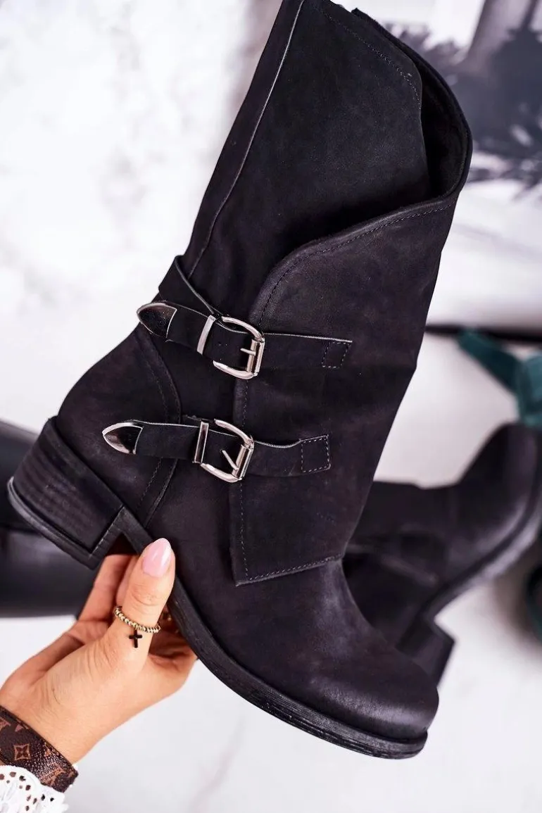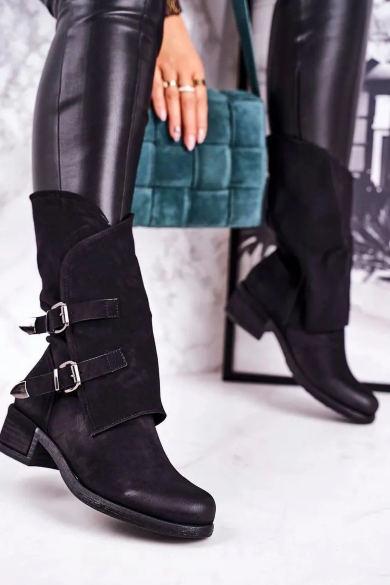Damskie Ocieplane Botki Z Klamrami Czarne Cassidy