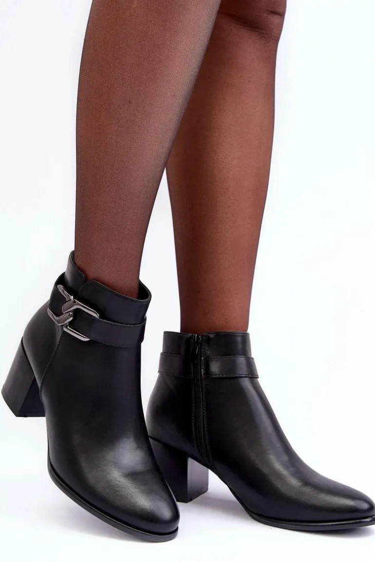 Damskie botki wykonane ze skóry ekologicznej. Posiadają suwak z boku cholewki, który ułatwia zakładanie obuwia. Sztyblety zostały subtelnie przyozdobione na boku cholewki. Botki osadzono na szerokim, niskim obcasie co sprawia, że są niezwykle wygodne. Posiadają w środku ocieplenie w postaci koca obuwniczego oraz usztywniany zapiętek. Świetny model do wielu stylizacji! Musisz je mieć! Przy wyborze rozmiaru prosimy sugerować się tabelą rozmiarów.