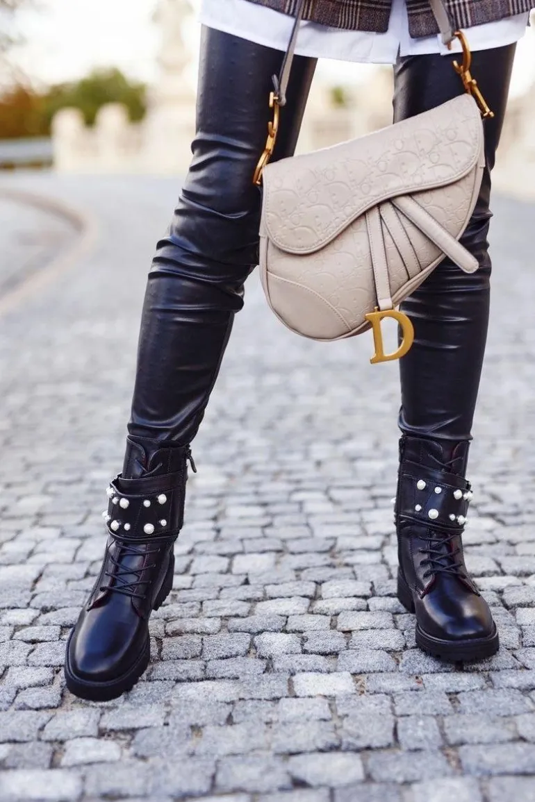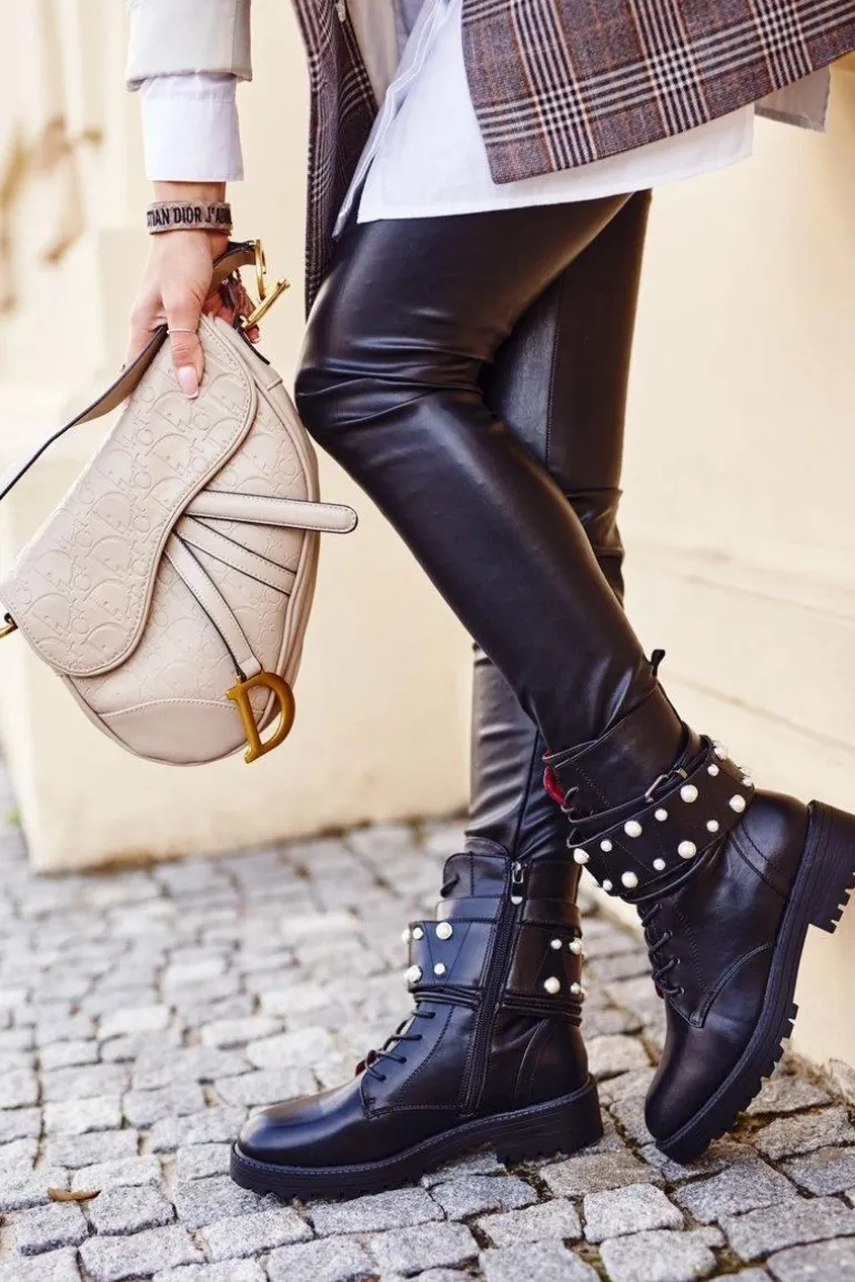 Wyjątkowe botki wykonane ze skóry ekologicznej, ozdobione pięknymi perełkami. Klasycznie sznurowane, dodatkowo zapinane na zamek. Botki ocieplone są miłym w dotyku kocem obuwniczym. Przy wyborze rozmiaru prosimy sugerować się tablicą rozmiarów.