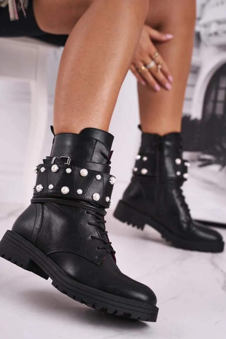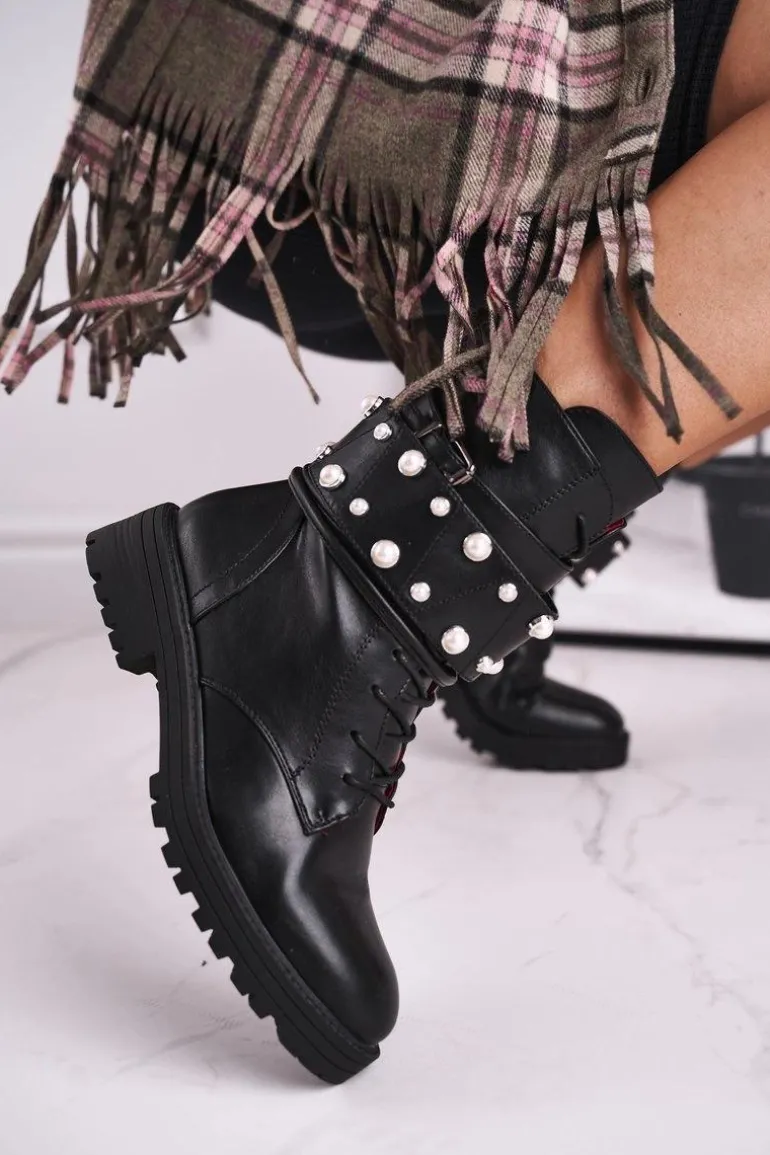 Damskie Ocieplane Botki z Perełkami Czarne Mishigan