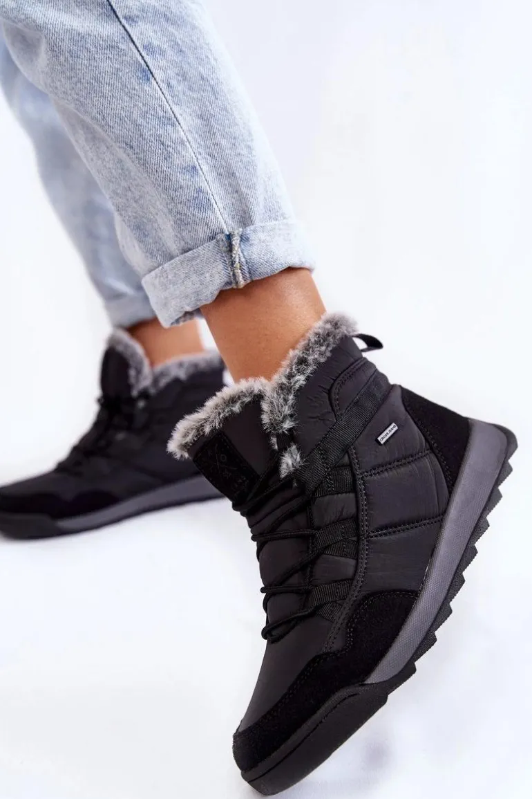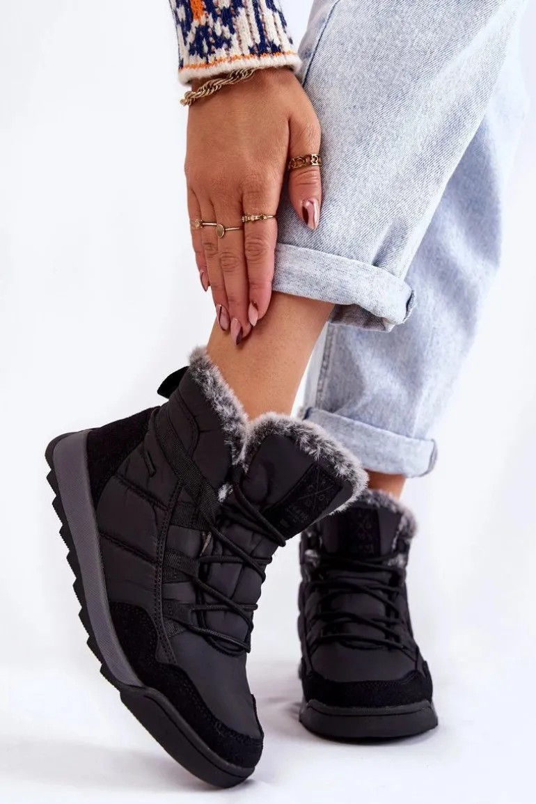 Niskie śniegowce damskie od marki Cross Jeans to idealny wybór na mroźne dni! Posiadają przeszycia na bokach cholewki. Osadzone na platformie. Śniegowce zostały ocieplone miłym w dotyku kocem obuwniczym wewnątrz oraz futerkiem na wykończeniu cholewki i języka. Model wykonany z wysokiej jakości materiału odpornego na wiatr i mróz. Podeszwa ze żłobieniami zapewni stabilność na każdym kroku. Przy wyborze rozmiaru, prosimy sugerować się tabelą rozmiarów.