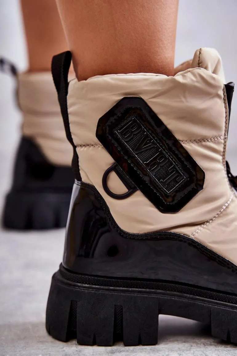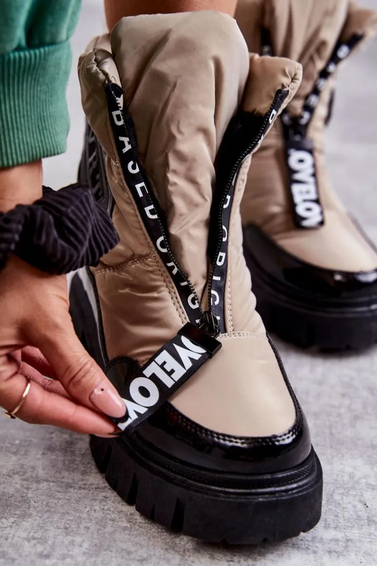 Damskie Ocieplane Śniegowce Na Suwak Beżowo-Czarne Marit