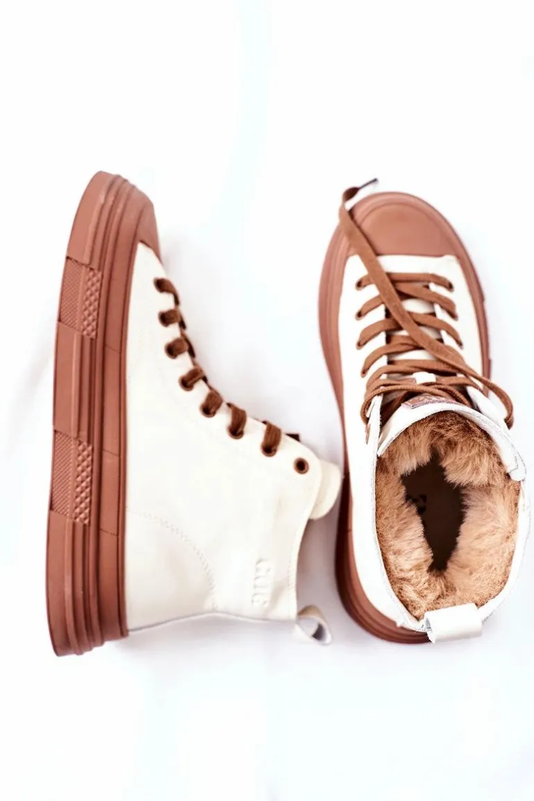 Jeśli szukasz idealnych trampek, to firma GOE ma coś specjalnego! Wysokie trampki, ocieplone wewnątrz kożuszkiem, sięgające aż za kostki. Model klasycznie sznurowany. Buty w całości zostały wykonane z naturalnej skóry licowej. Góra cholewki delikatnie docieplona grubym, sztucznym futerkiem. Dodatkowym atutem jest solidna, antypoślizgowa podeszwa. Przy wyborze rozmiaru prosimy sugerować się tabelą rozmiarów.
