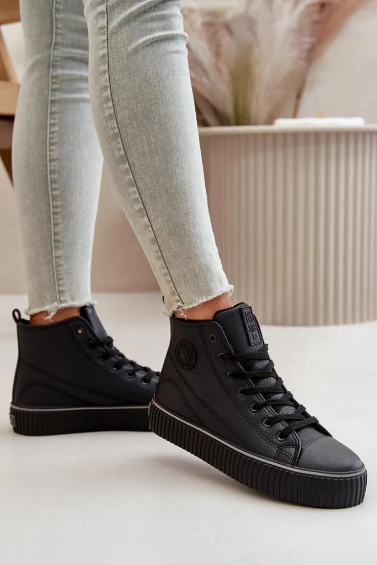 Damskie trampki marki BIG STAR to modny wybór na każdą okazję. Wykonane z eko skóry, są osadzone na solidnej platformie z gumy, co zapewnia wygodę i styl. Sznurowane i z cholewką sięgającą za kostkę, te buty są ocieplone kocem obuwniczym, co gwarantuje ciepło w chłodniejsze dni. Usztywniony zapiętek dodaje im trwałości. Zachęcamy do odkrycia pełnej kolekcji obuwia marki BIG STAR. Przy wyborze rozmiaru prosimy sugerować się tabelą rozmiarów.