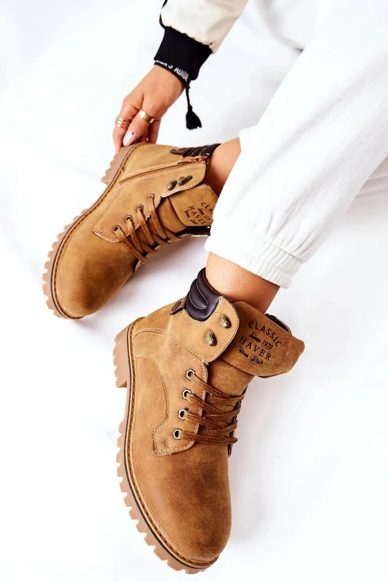 Trapery wykonane zostały z eko skóry. W środku posiadają ocieplenie w postaci miękkiego futerka. Zapinane na suwak oraz wiązane. Idealne na długie spacery w chłodne dni. Buty posiadają przeszycia po bokach i na górze cholewki. Ozdobne tłoczenie na języku. Antypoślizgowa podeszwa. Przy wyborze rozmiaru prosimy sugerować się tabelą rozmiarów.