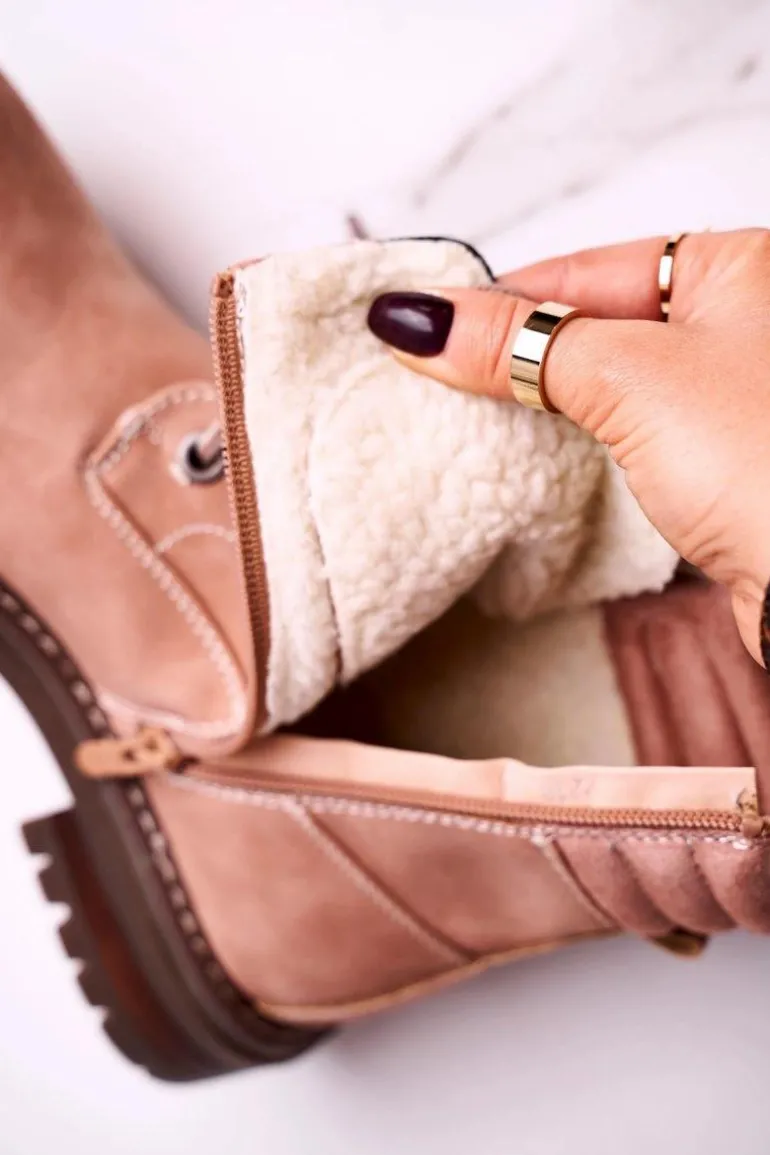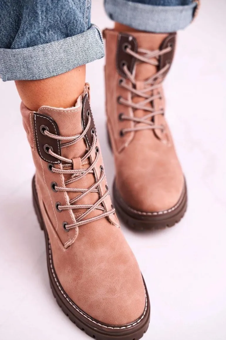 Damskie Ocieplane Workery Trapery Różowe Timber