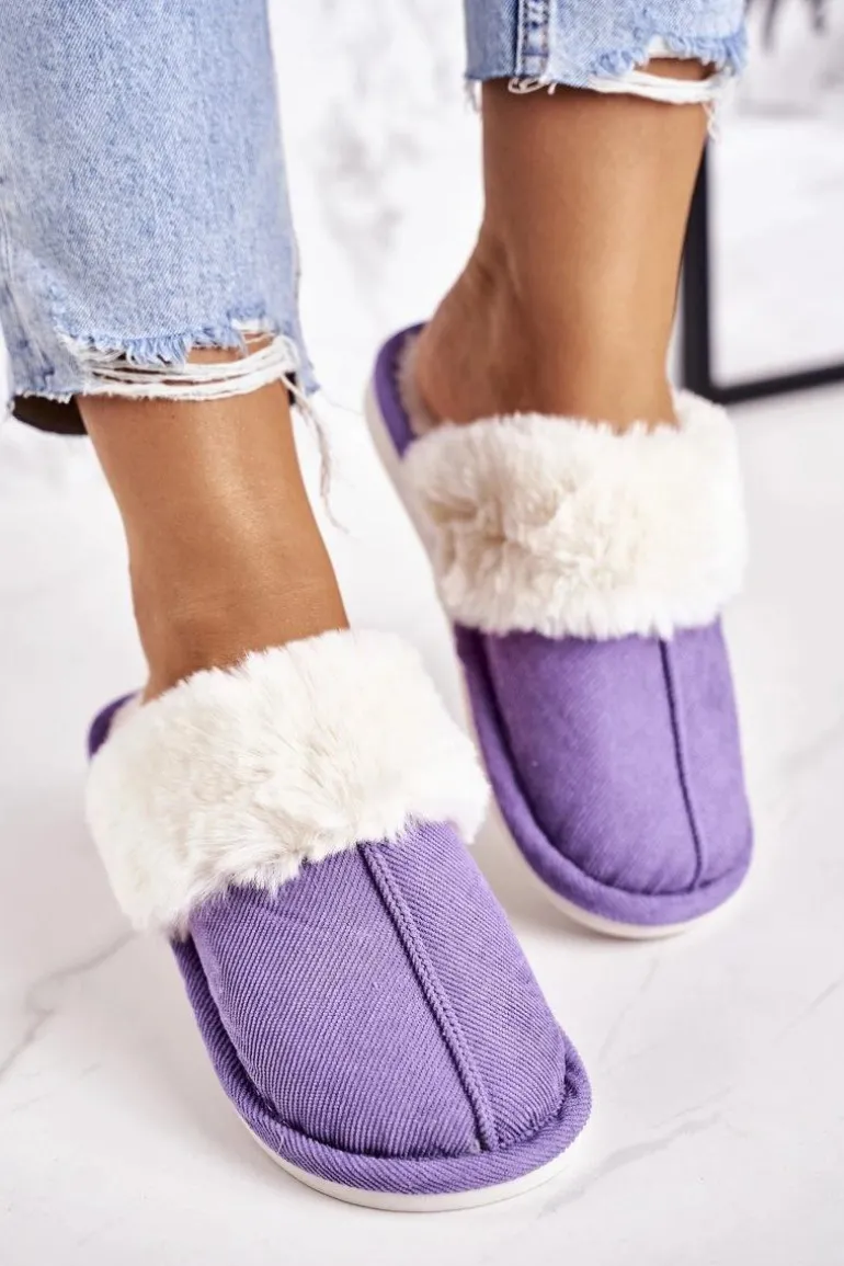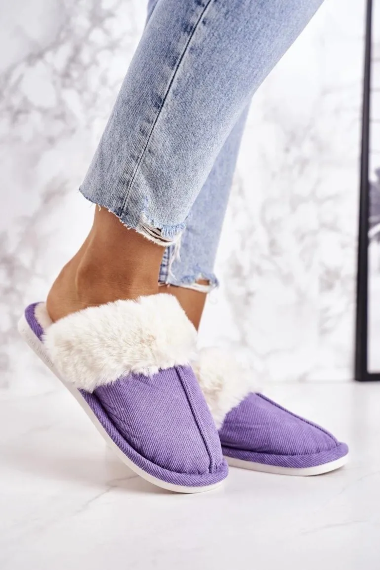 Damskie Papcie Klapki z Futerkiem Fioletowe Homely