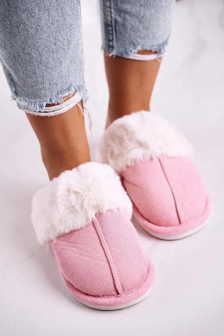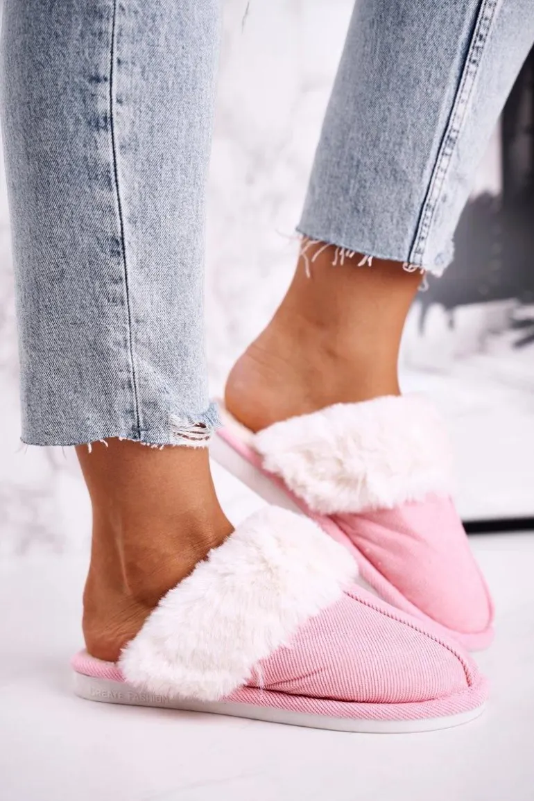 Damskie Papcie Klapki z Futerkiem Różowe Homely