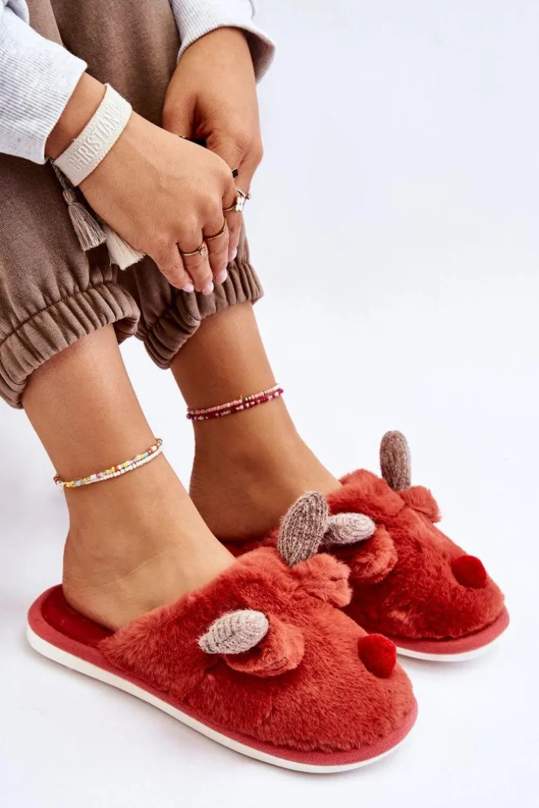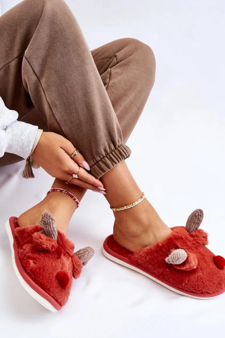 Piękny model papci damskich powinien zagościć w Twoim domu! Wykonane z miękkiego, futrzanego materiału. Ozdobione z przodu porożem, uszkami oraz noskiem z materiału. Klasyczny, wsuwany model został wewnątrz ocieplony futerkiem. Papcie osadzono na gumowej platformie. Świetny model na mroźne dni! Przy wyborze rozmiaru prosimy sugerować się tabelą rozmiarów.