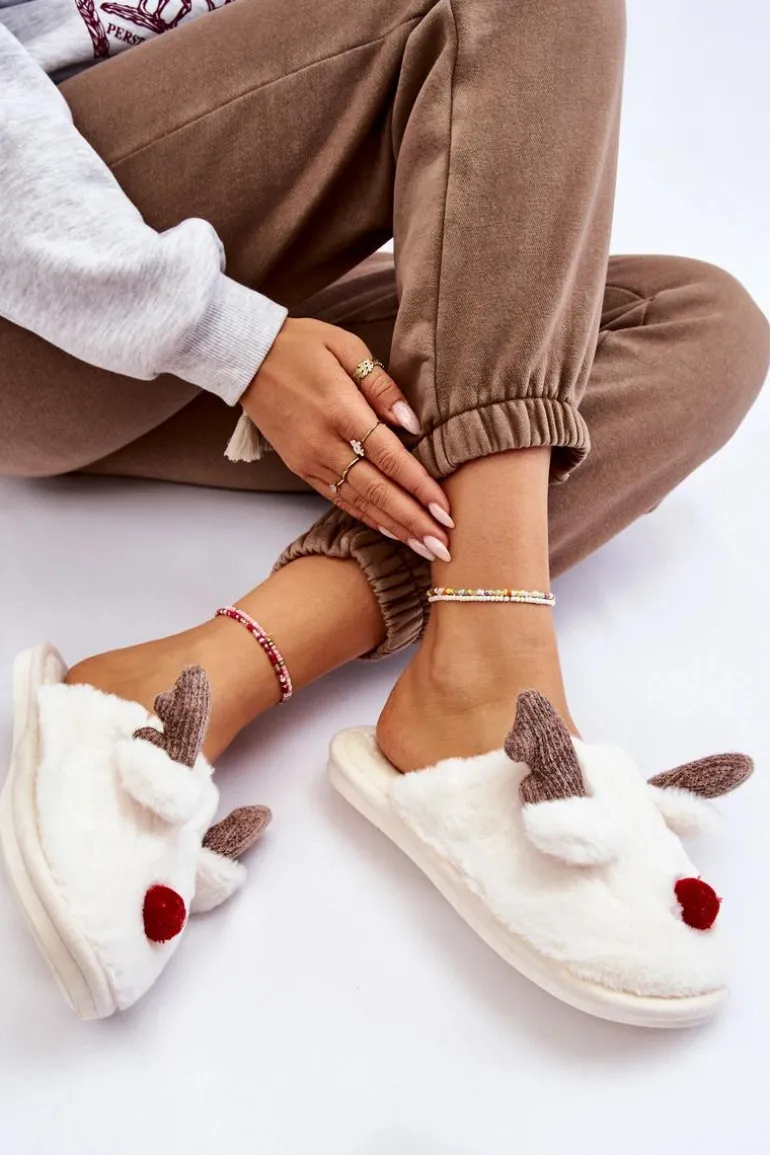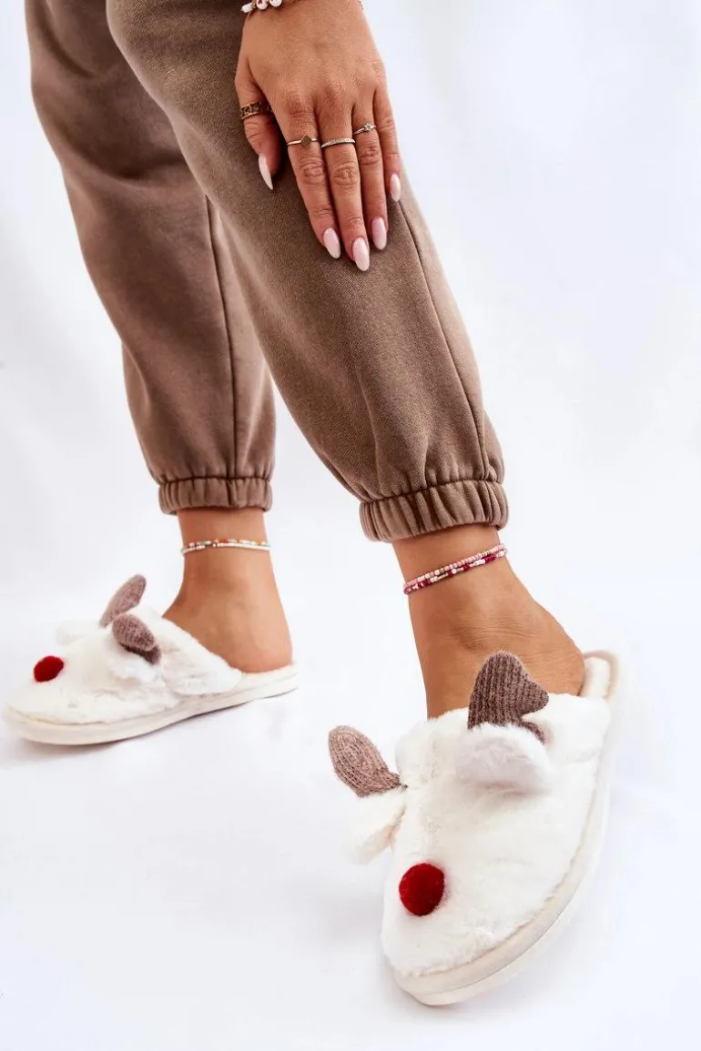 Piękny model papci damskich powinien zagościć w Twoim domu! Wykonane z miękkiego, futrzanego materiału. Ozdobione z przodu porożem, uszkami oraz noskiem z materiału. Klasyczny, wsuwany model został wewnątrz ocieplony futerkiem. Papcie osadzono na gumowej platformie. Świetny model na mroźne dni! Przy wyborze rozmiaru prosimy sugerować się tabelą rozmiarów.