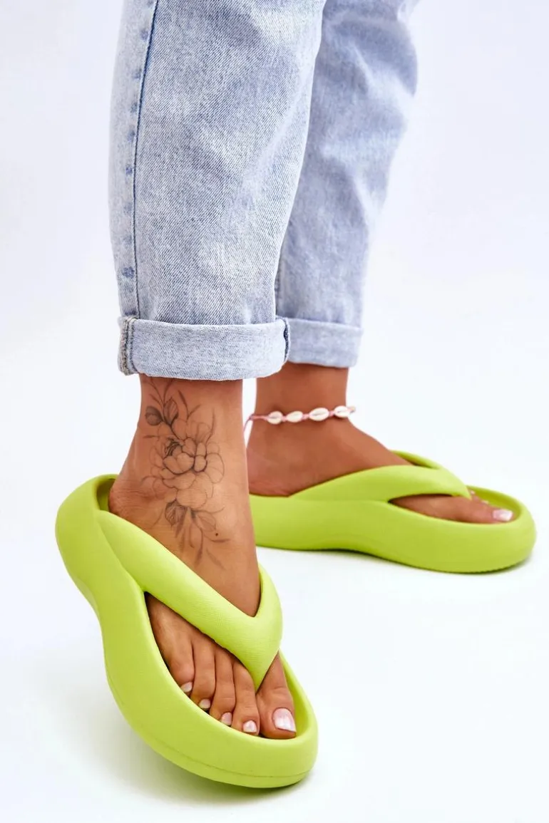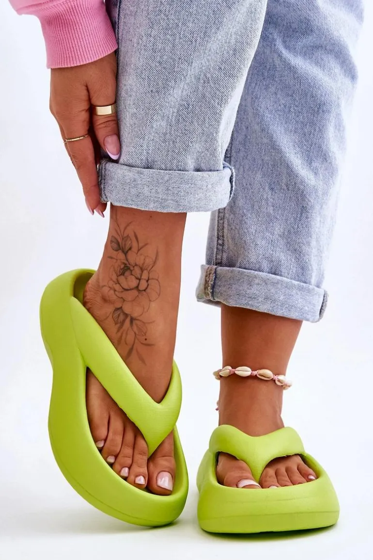 Wygodne, damskie japonki wykonane w całości z piankowego tworzywa. Model ten został osadzony na masywnej platformie, dzięki któremu są bardzo komfortowe w użytkowaniu. Ten wyjątkowy fason świetnie sprawdzi się w upalne dni! Klapki-japonki świetnie sprawdzą się na co dzień, na plażę czy basen. Przy wyborze rozmiaru prosimy sugerować się tabelą rozmiarów.