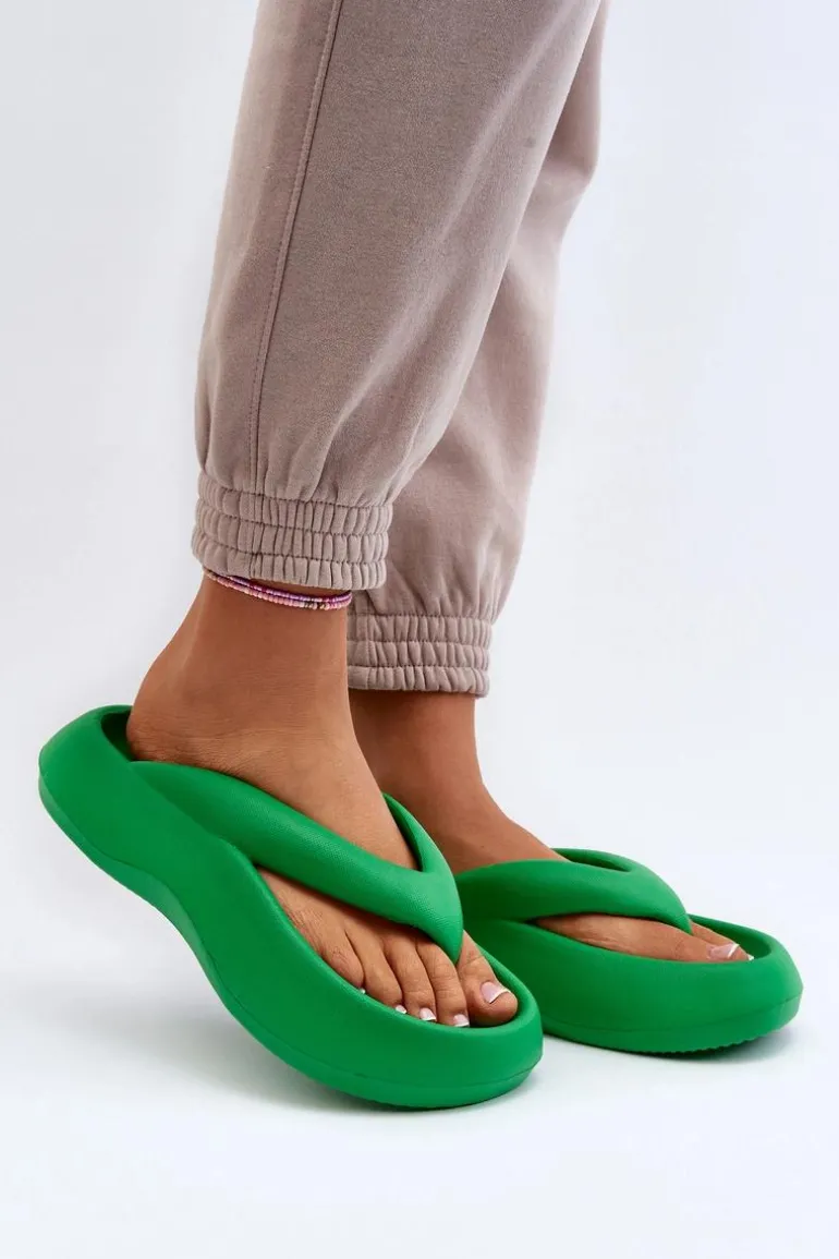 Wygodne, damskie japonki wykonane w całości z piankowego tworzywa. Model ten został osadzony na masywnej platformie, dzięki któremu są bardzo komfortowe w użytkowaniu. Ten wyjątkowy fason świetnie sprawdzi się w upalne dni! Klapki-japonki świetnie sprawdzą się na co dzień, na plażę czy basen. Przy wyborze rozmiaru prosimy sugerować się tabelą rozmiarów.