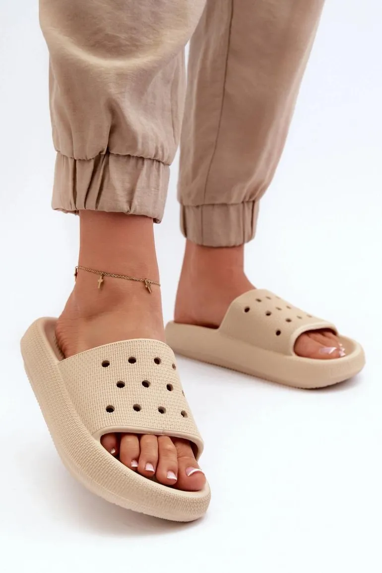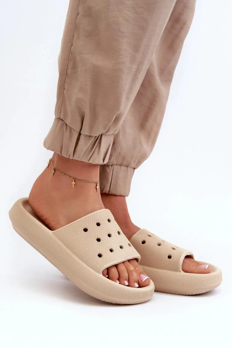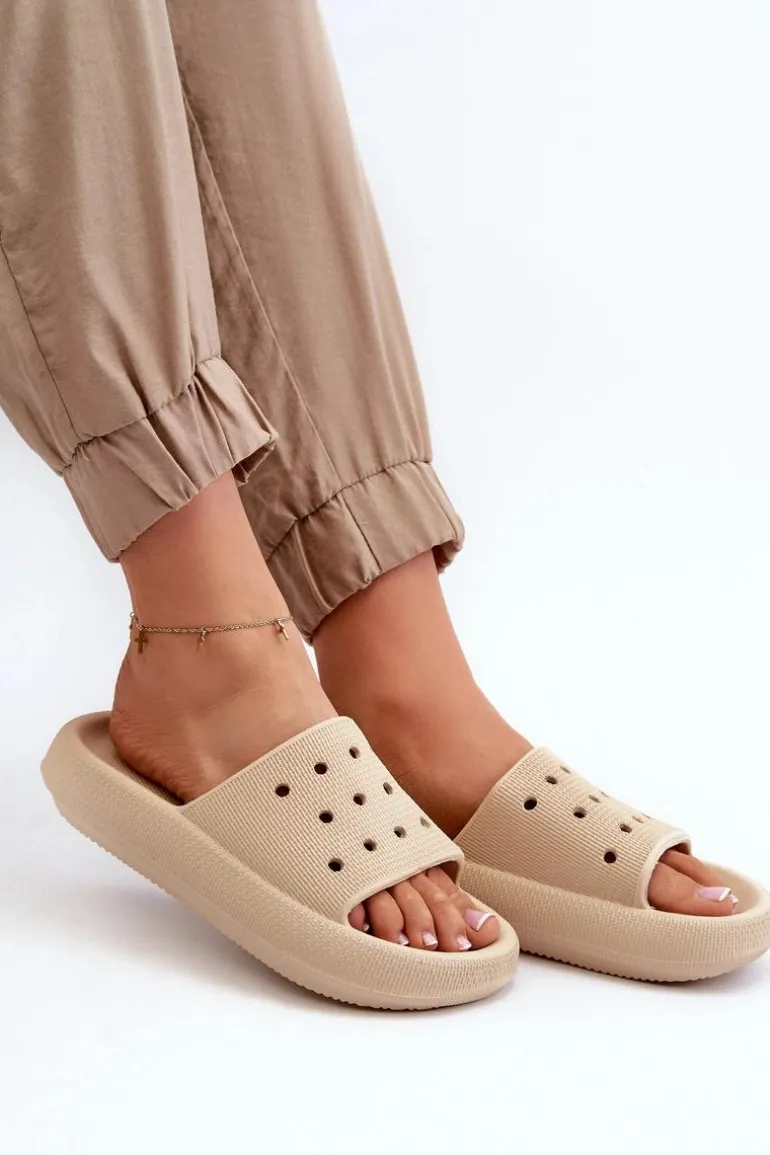 Damskie Piankowe Klapki Na Grubej Podeszwie Beżowe Beula