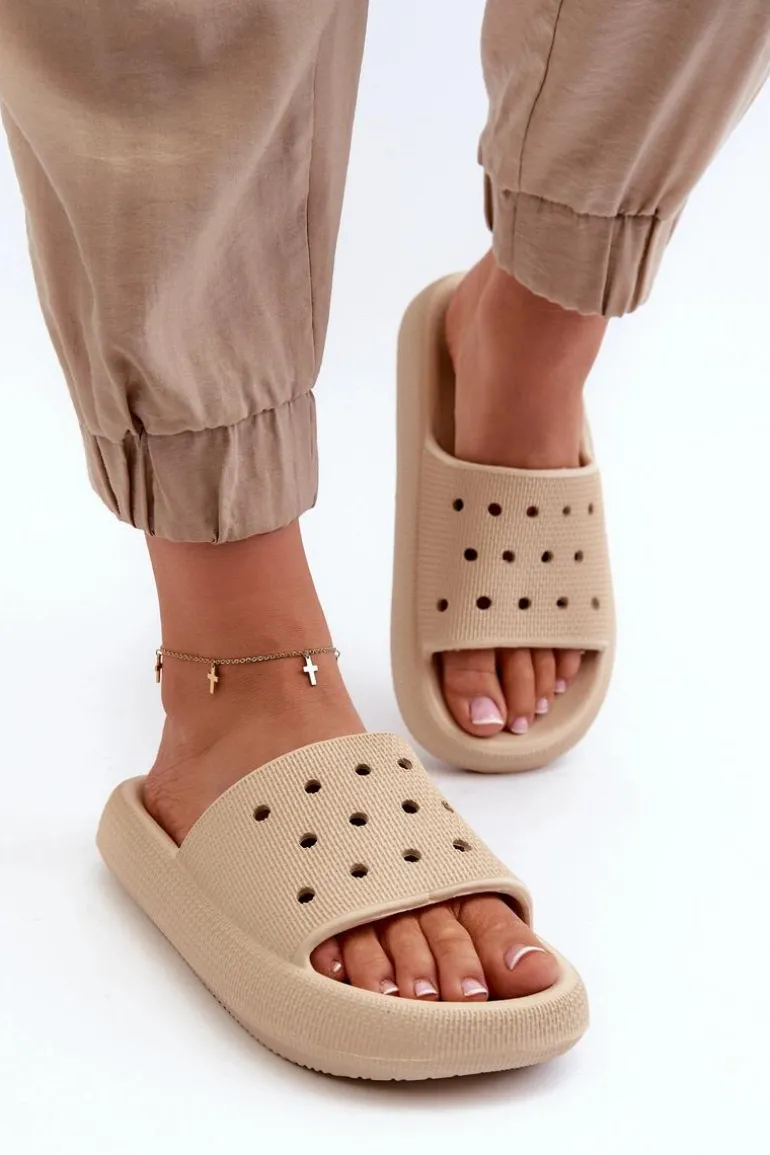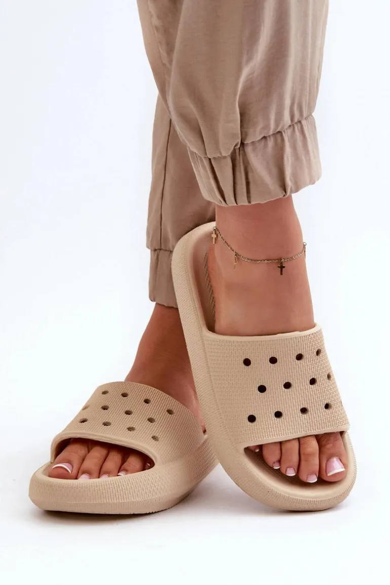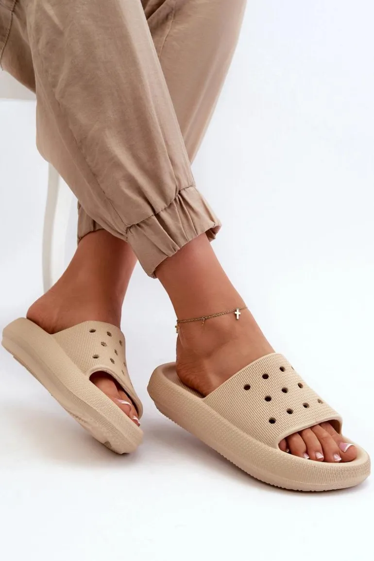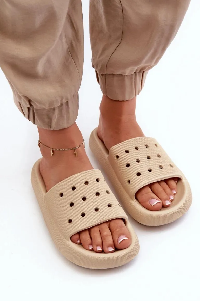 Damskie Piankowe Klapki Na Grubej Podeszwie Beżowe Beula