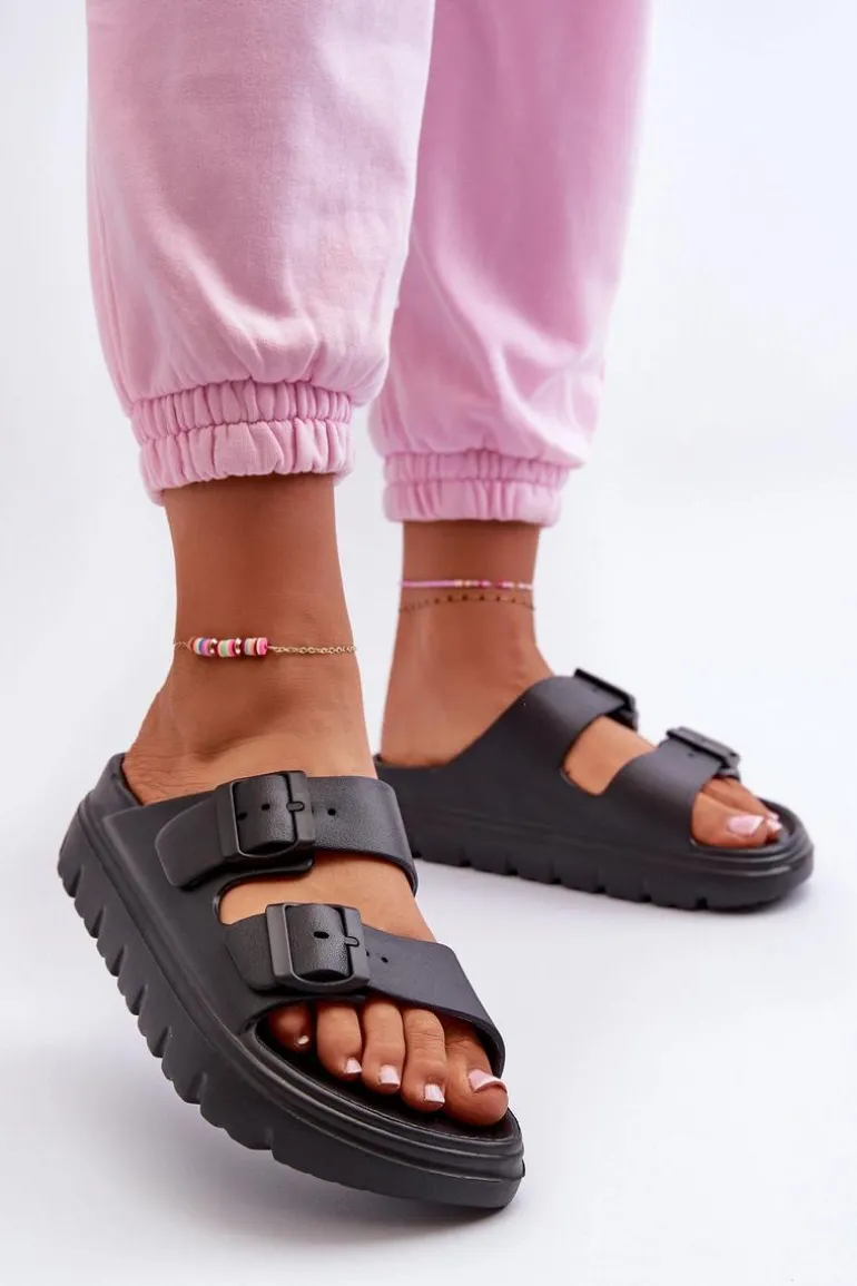 Lekkie i wygodne klapki damskie wykonane z pianki, idealne na lato. Osadzone na platformie, zapewniają komfort noszenia przez cały dzień. Dwa regulowane paski pozwalają na idealne dopasowanie do stopy, te klapki są zarówno praktyczne, jak i stylowe. Przy wyborze rozmiaru prosimy kierować się tabelą rozmiarów.