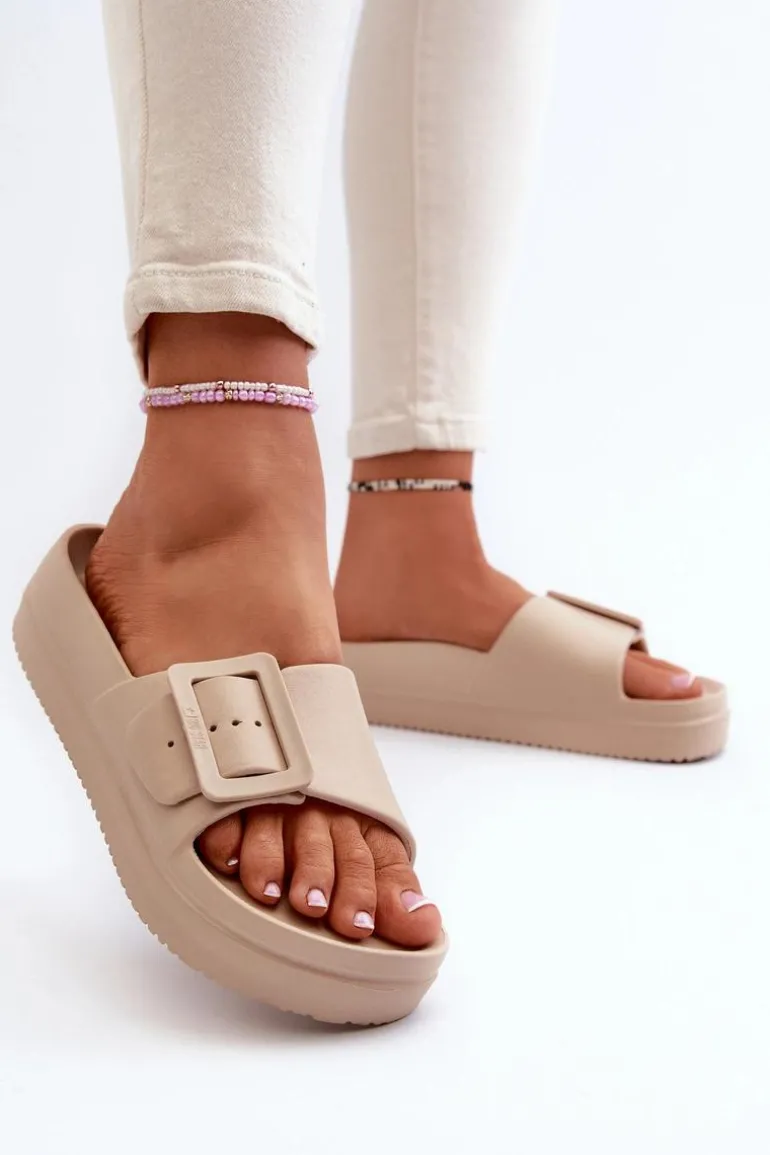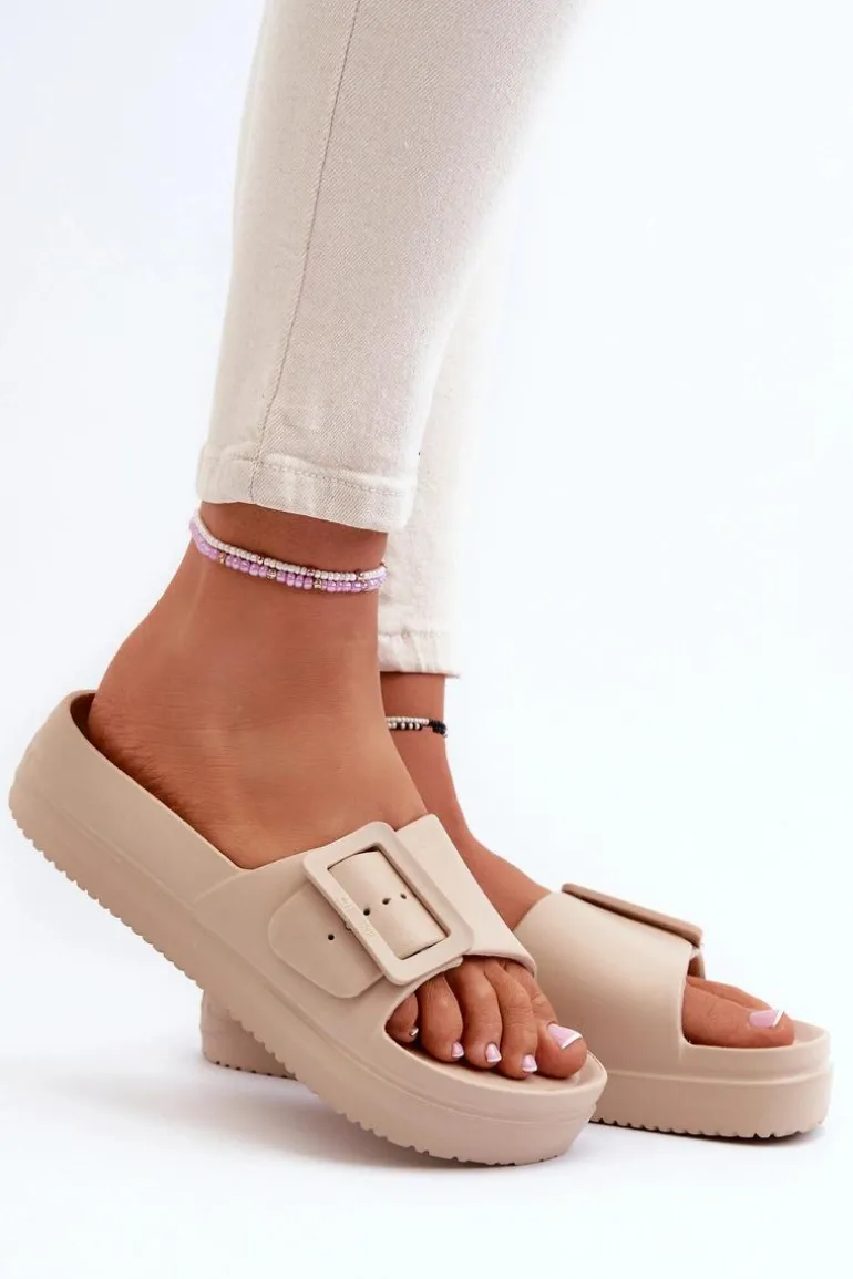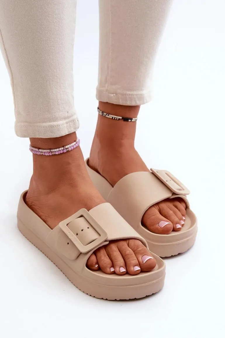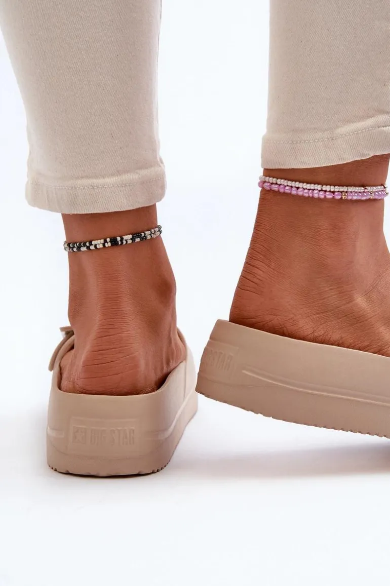 Damskie klapki marki Big Star to świetny wybór dla tych, którzy chcą połączyć stylowy wygląd z wygodą. Zrobione z lekkiej pianki i umieszczone na platformie, gwarantują komfort przez cały dzień. Z przodu znajduje się pasek z klamrą. Doskonałe na letnie dni! Przy wyborze rozmiaru prosimy sugerować się tabelą rozmiarów.