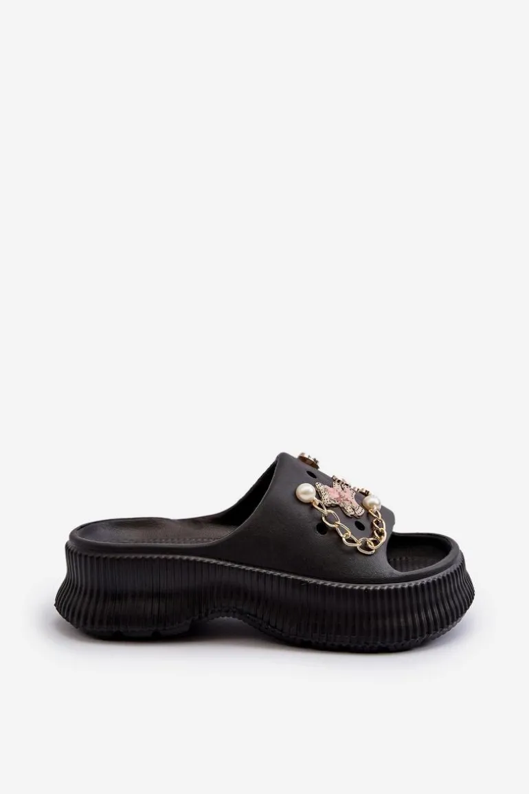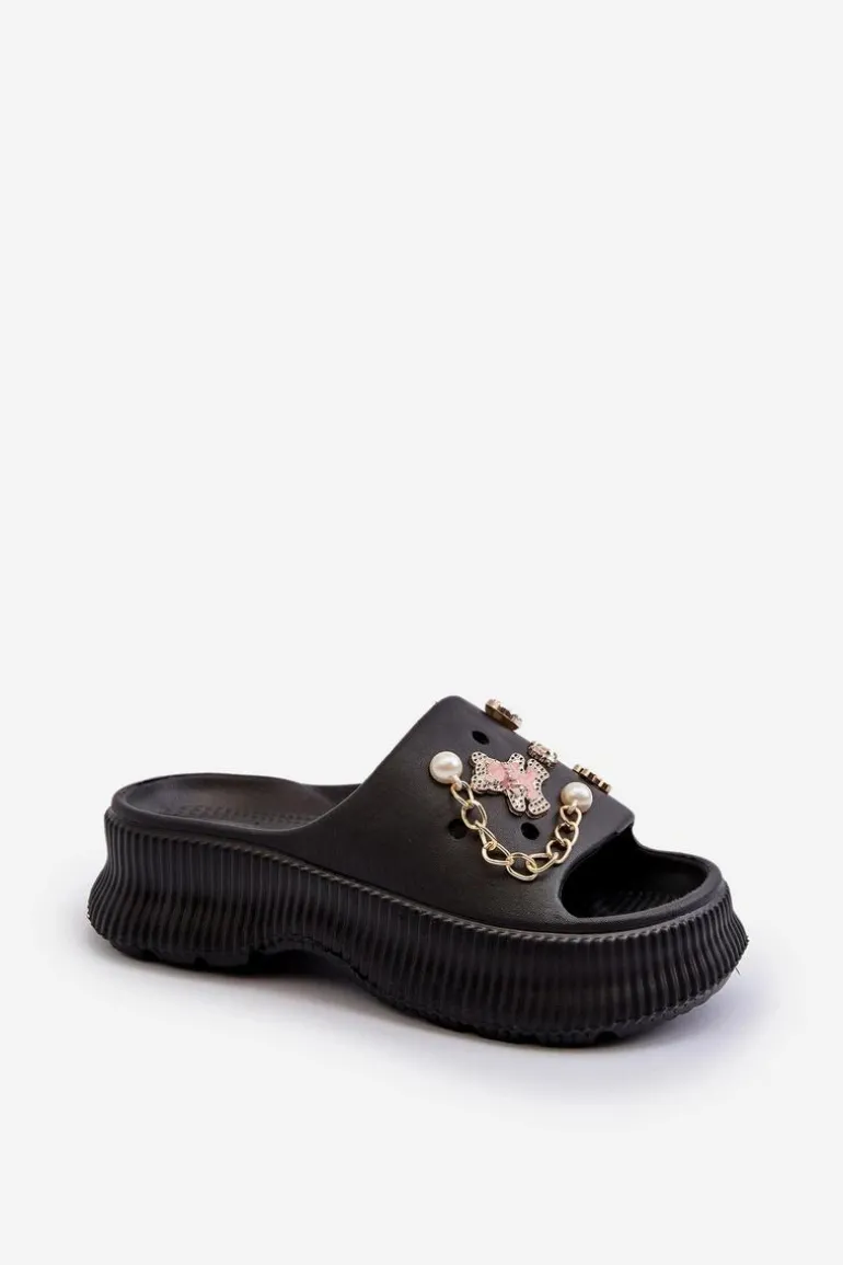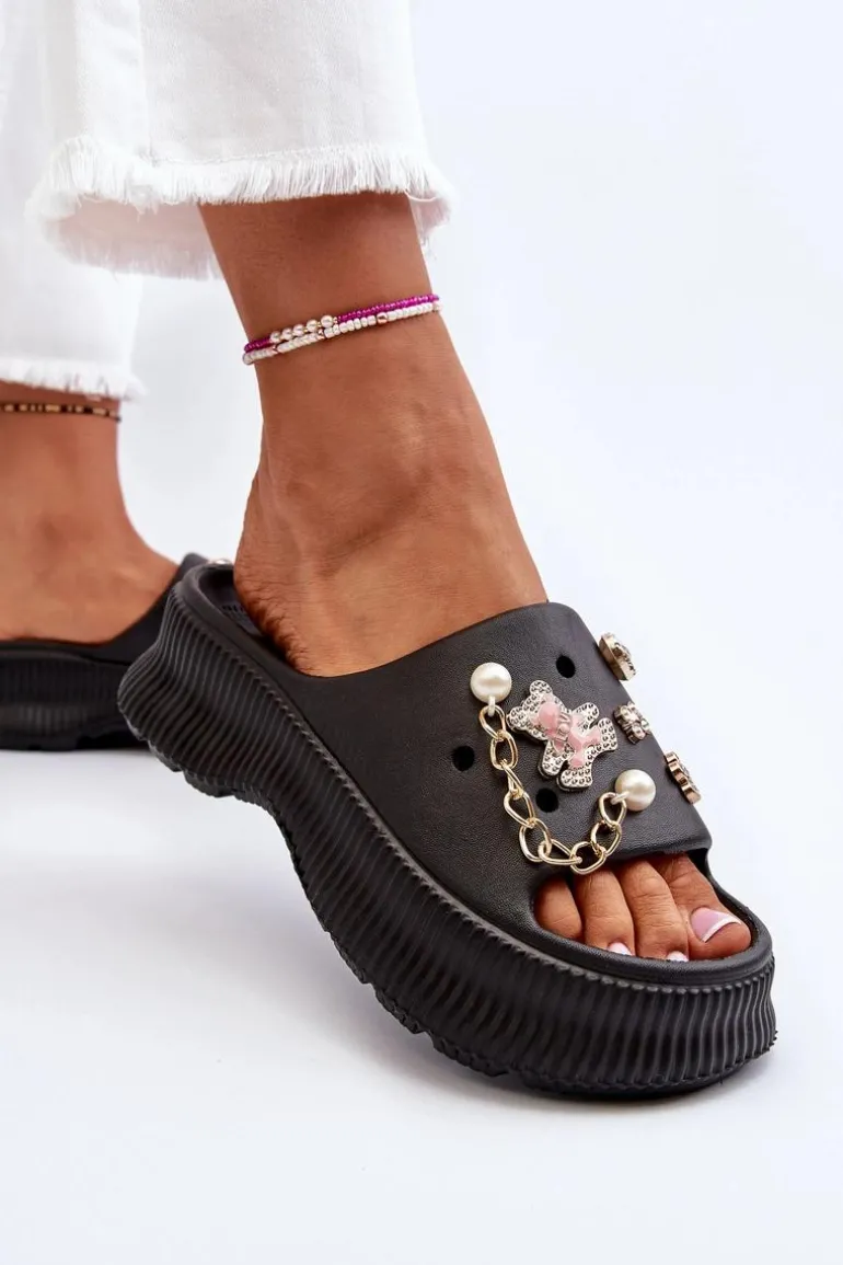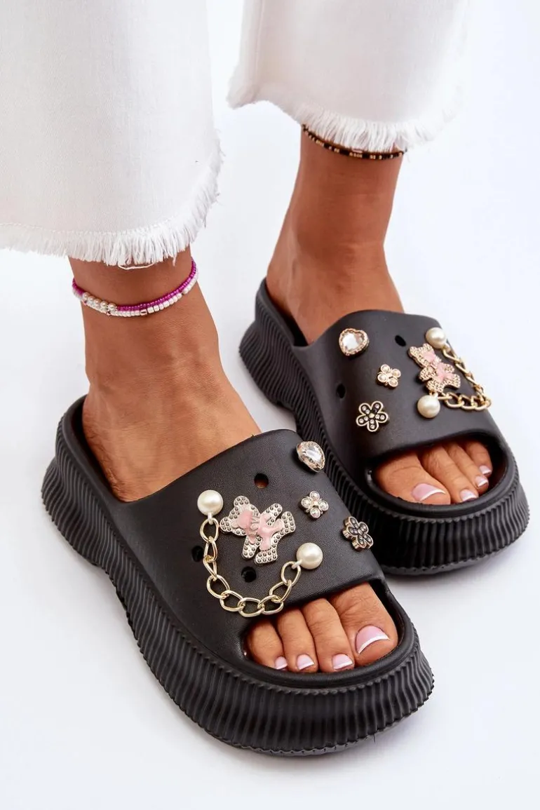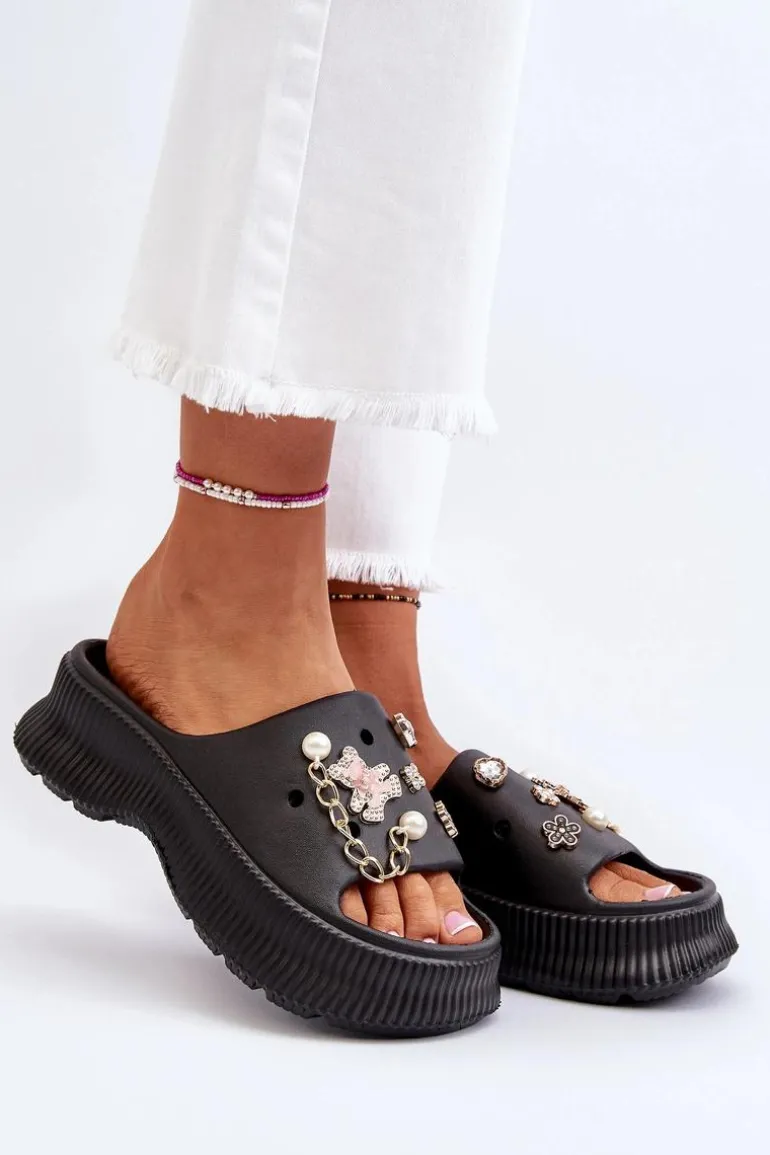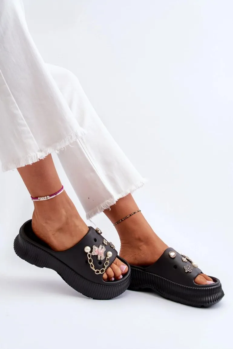 Damskie Piankowe Klapki Z Ozdobami Czarne Afariana